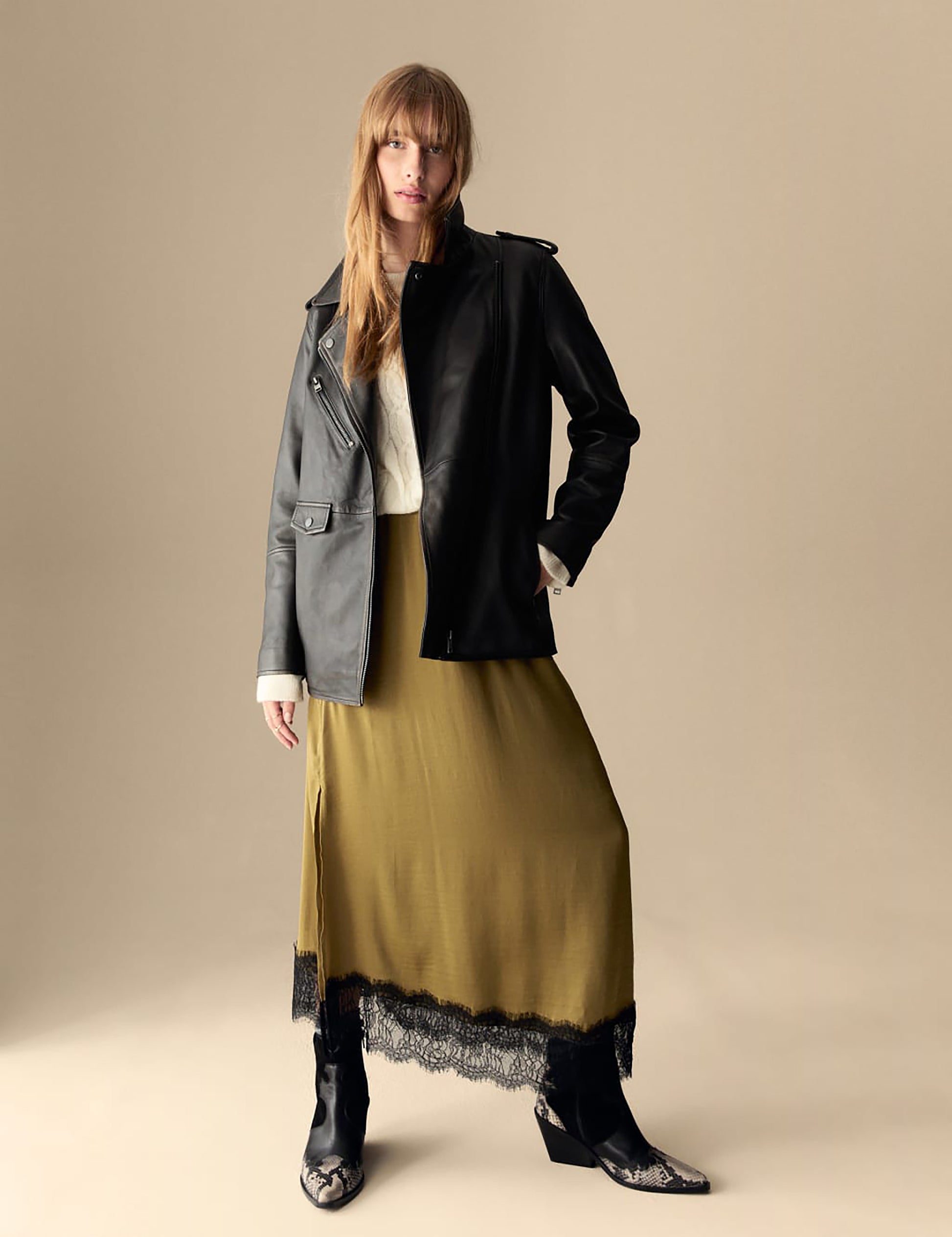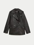 Add a modern look to your casual wardrobe with this girlfriend biker jacket from our Per Una collection. It's crafted in an easy regular fit from pure leather to provide a luxurious look. A zip-through fastening gives a secure feel, while the longline design offers a flattering silhouette. This collared style is complete with numerous handy pockets. Per Una: stylish designs crafted with carefully considered details and feminine flourishes.
