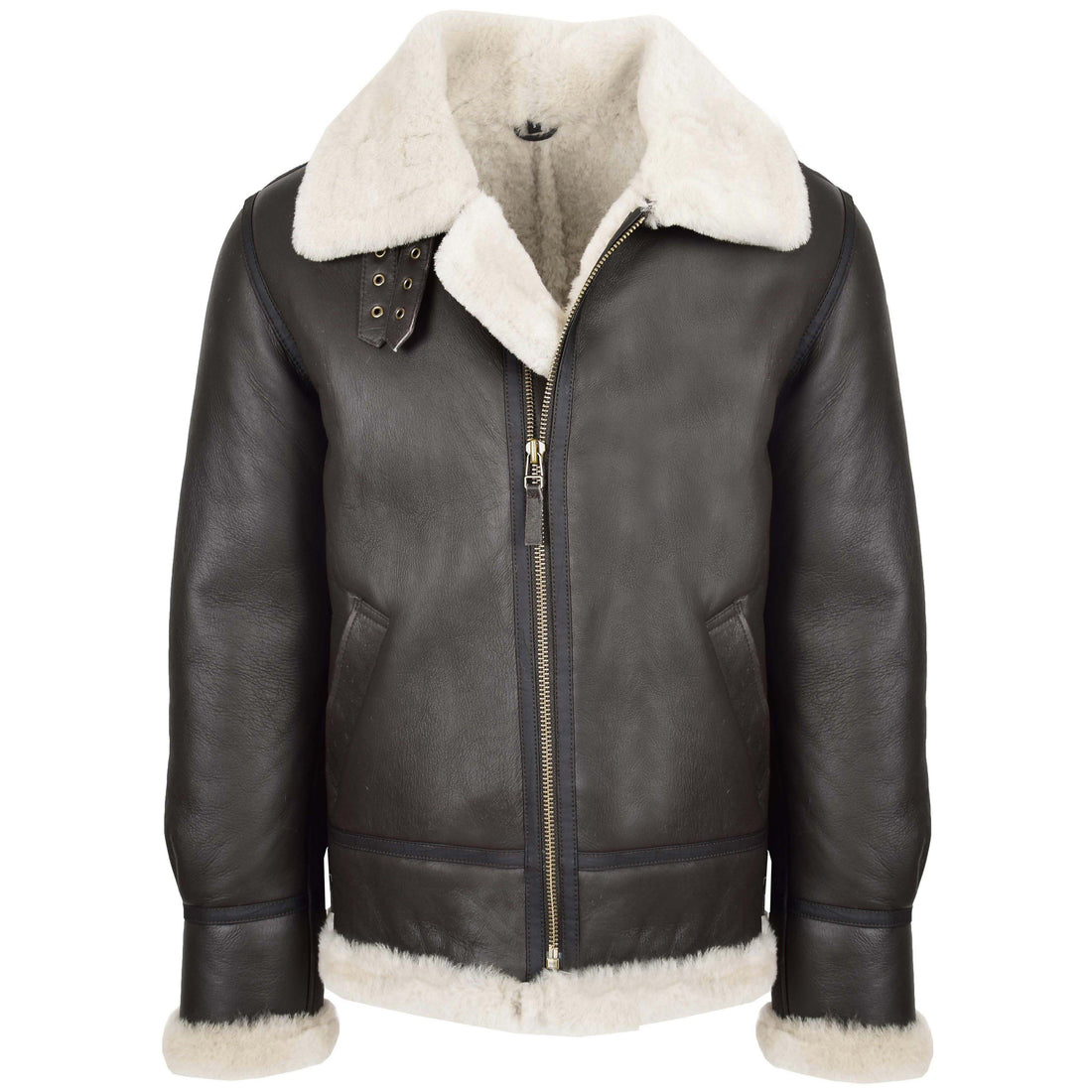Herren Classic B3 Original Schaffelljacke Braun Weiß