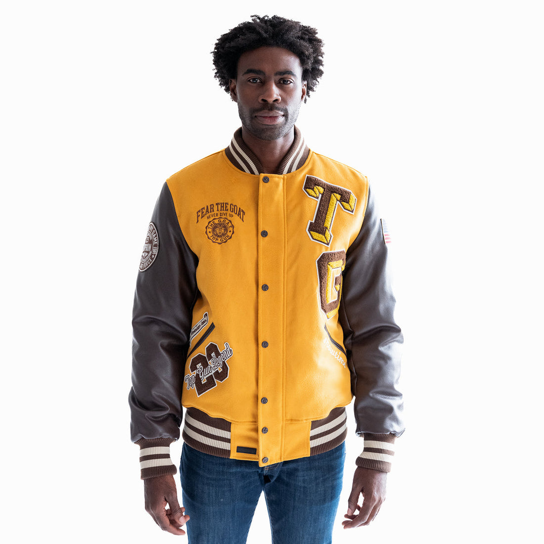 Die Bear Goat Collegejacke zeigt einen Bären, der über seine Schulter blickt. Begleitet wird dieser...