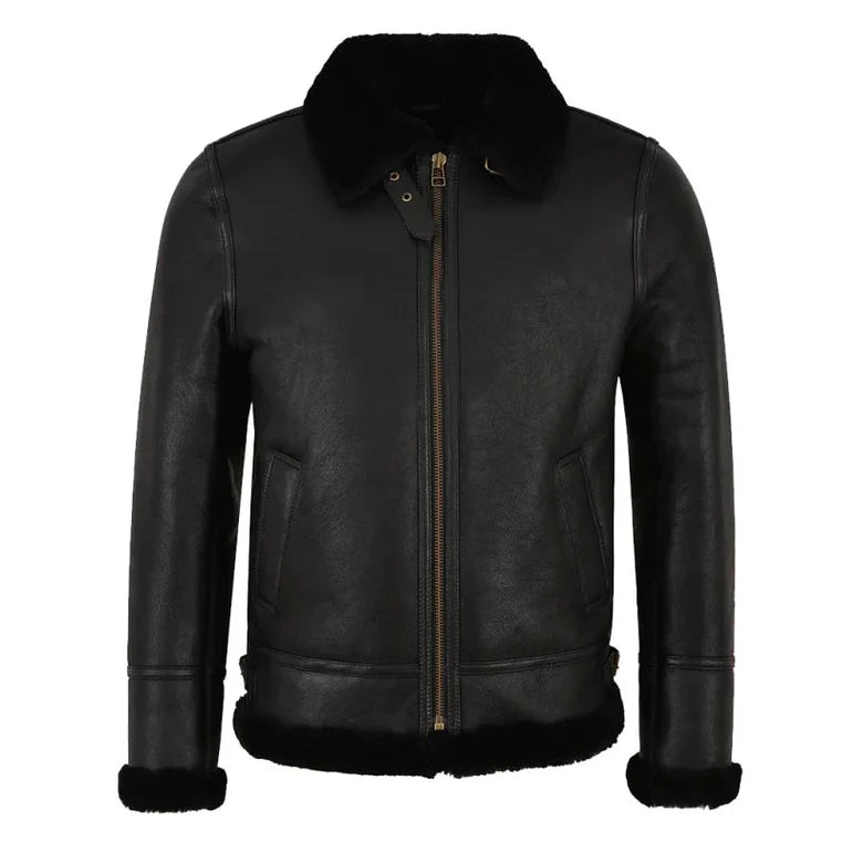 Herren B3 Schaffelljacke mit Gürtel Schwarz & Schwarz