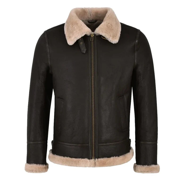 Herren B3 Pelz- und Lammfell-Lederjacke in Dunkelbraun