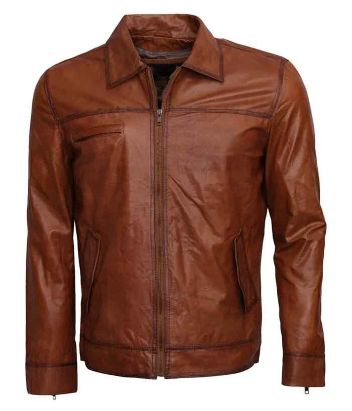 Herren Distinctive Distressed Braun Trucker Jacke Vintage Stil Lederjacke