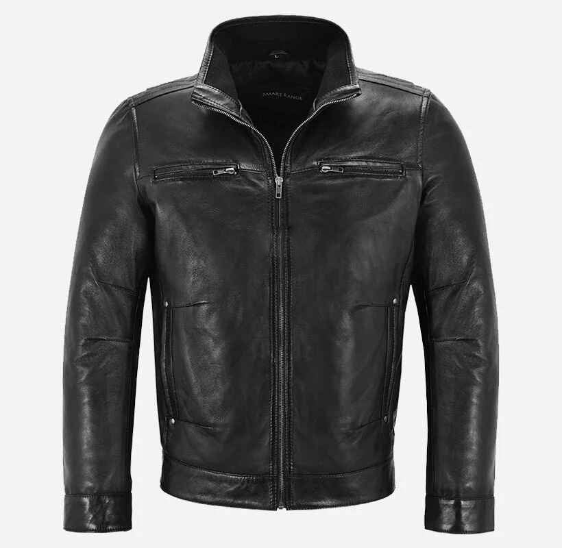 Schwarze Lederjacke im Vintage-Stil für Herren