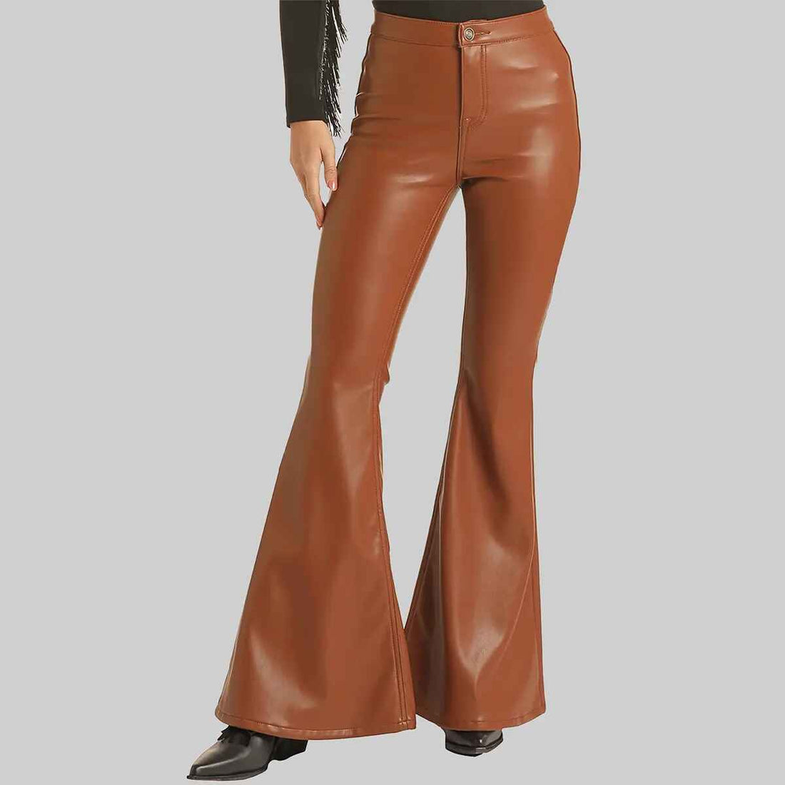 Braune Bootcut-Hose aus Kunstleder mit hoher Taille für Damen
