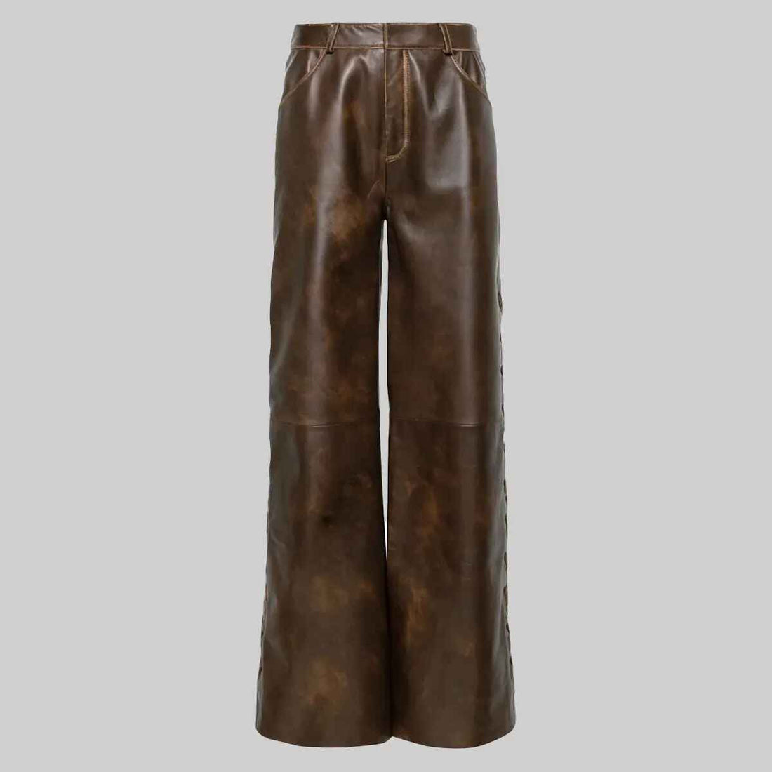 Dunkelbraune Lederhose Olan mit weitem Bein für Damen