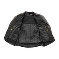 - Zwei Brusttaschen, zwei Schrägtaschen und zwei verdeckte Tragetaschen mit Holstern.