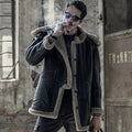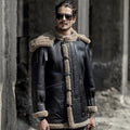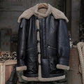 Herren B7 Graue Pelz-Lammfell-Lederjacke mit abnehmbarer Kapuze