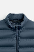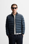 Gefütterte Jacke mit normaler Passform. Hoher Kragen und lange Ärmel. Leistentaschen an der Hüfte. Elastische Abschlüsse. Reißverschluss vorne.