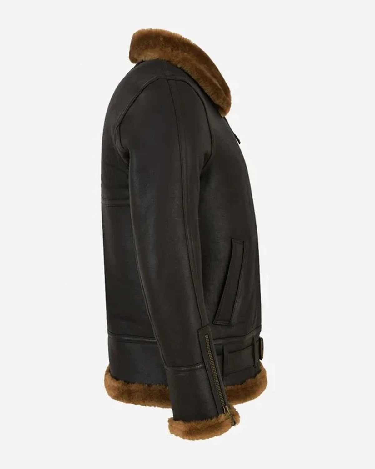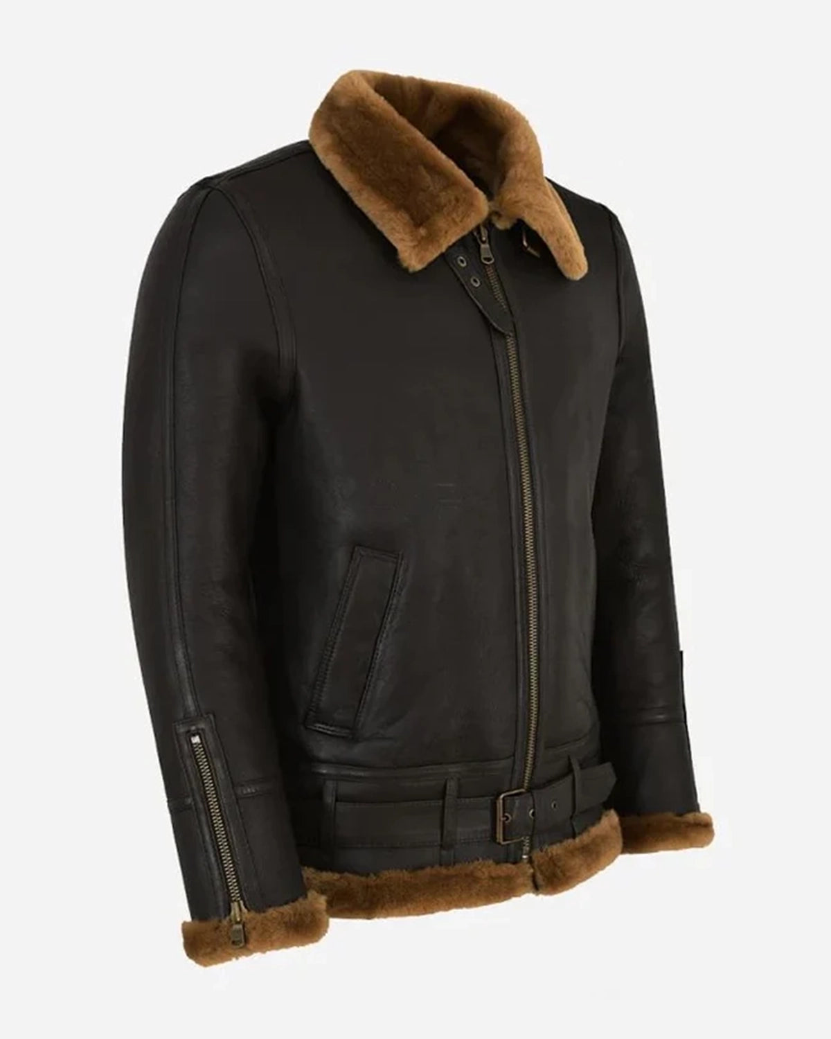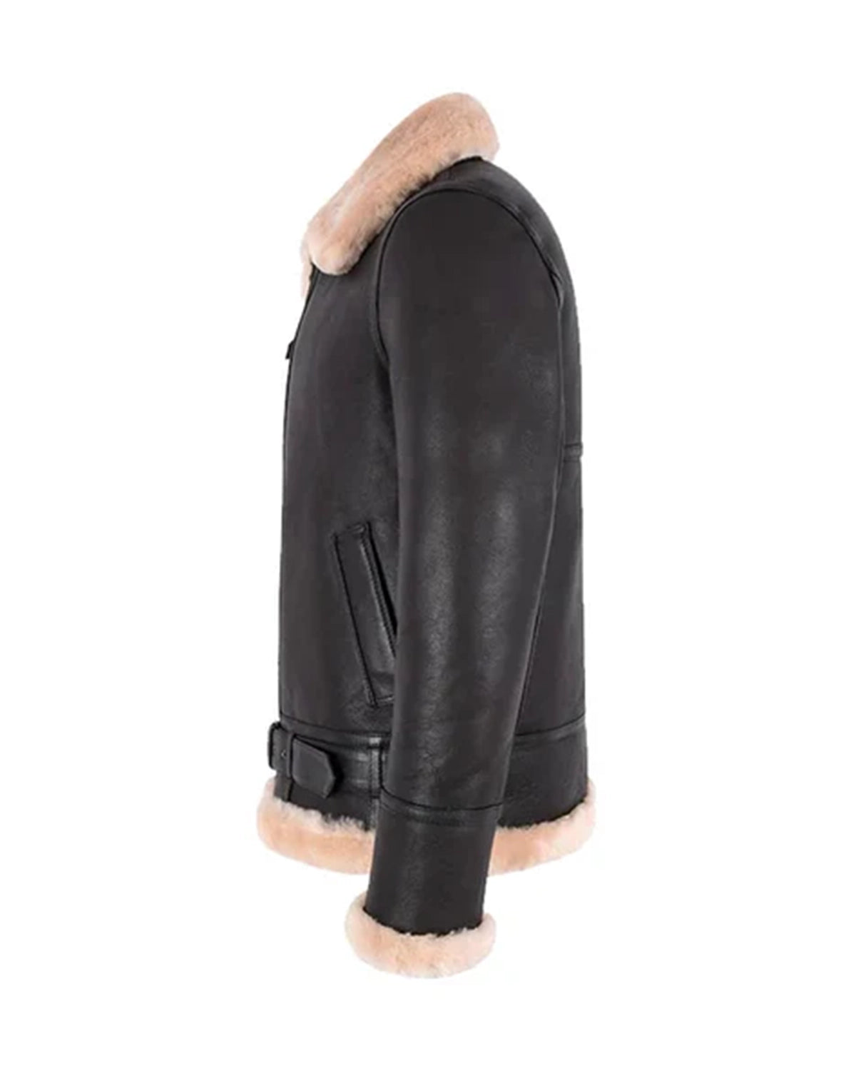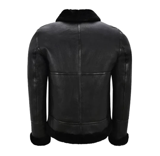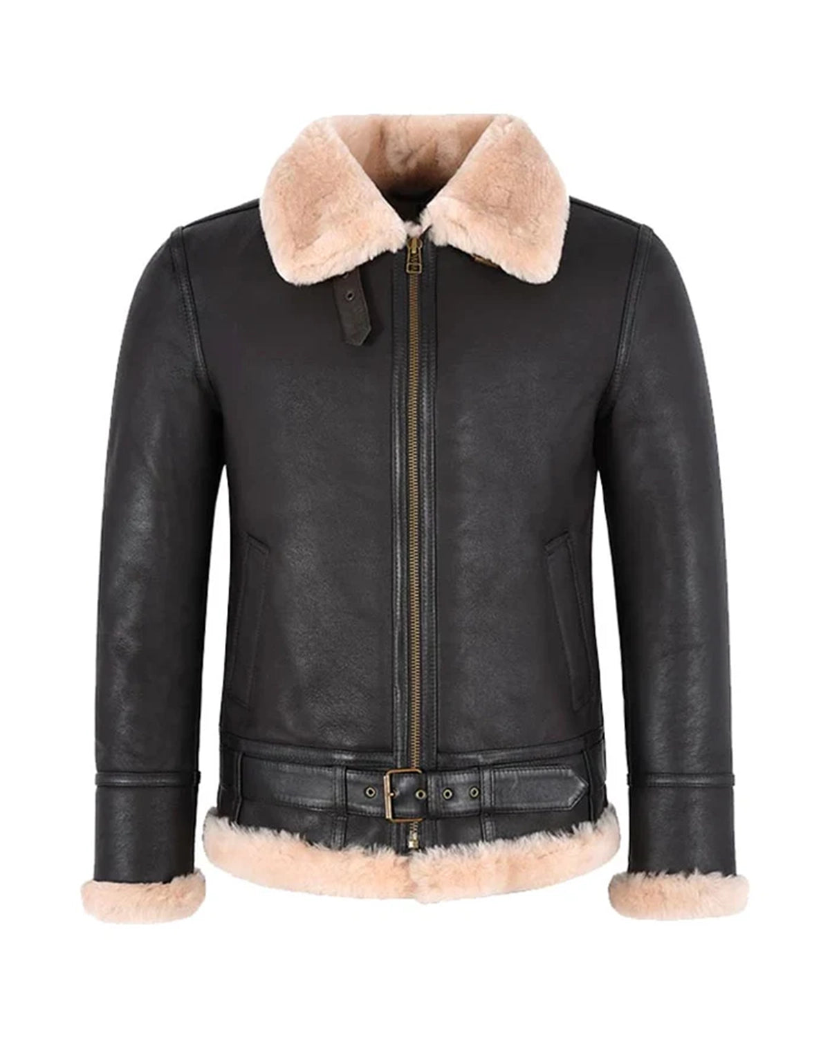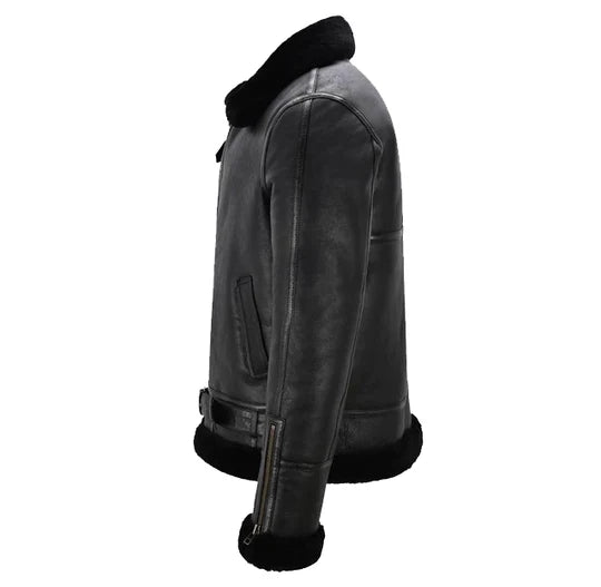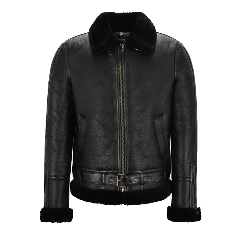 Herren B3 Schaffelljacke mit Gürtel Schwarz & Schwarz