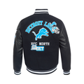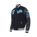 Schwarze Collegejacke „DETROIT LIONS“ aus gerippter Wolle und Leder für Herren