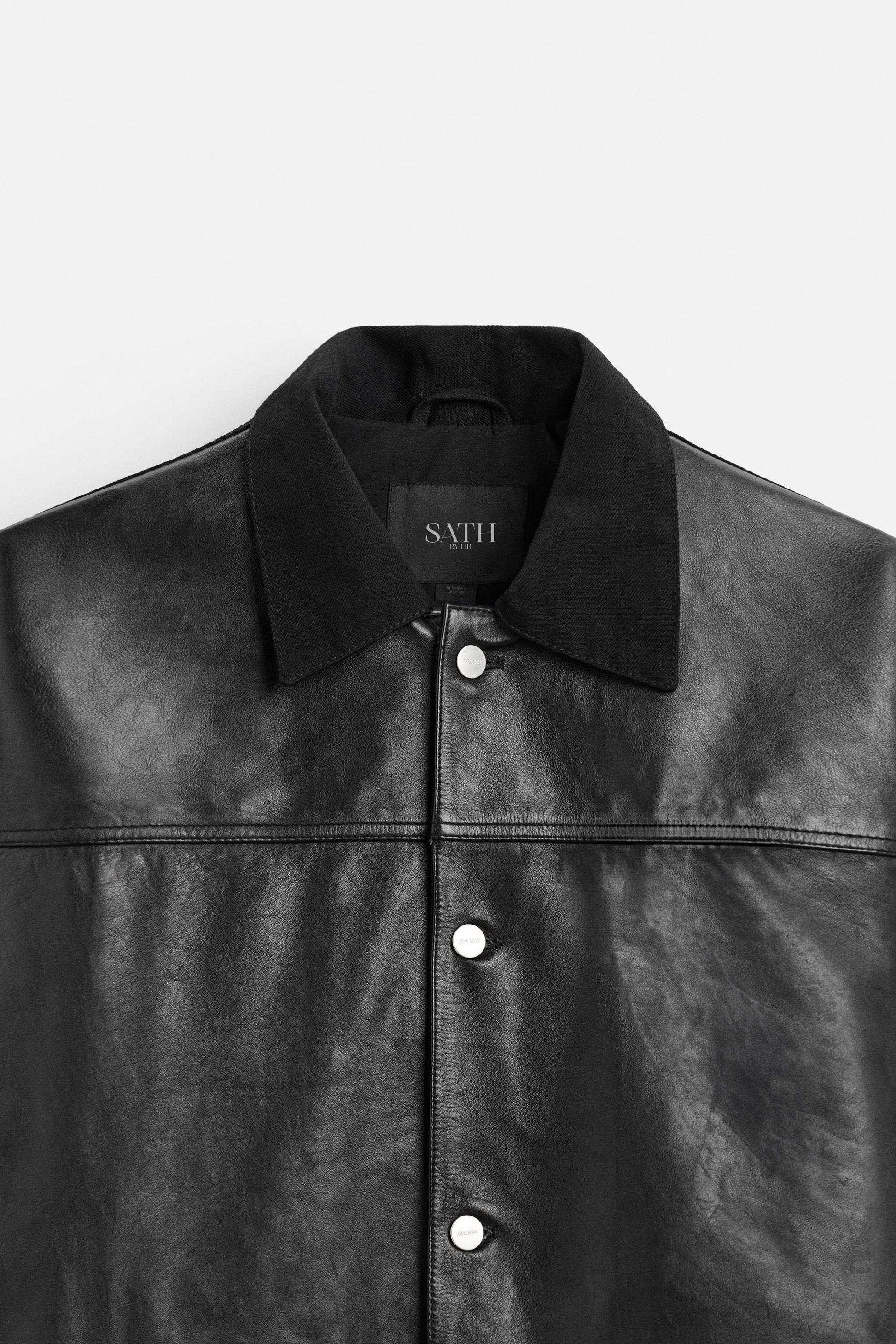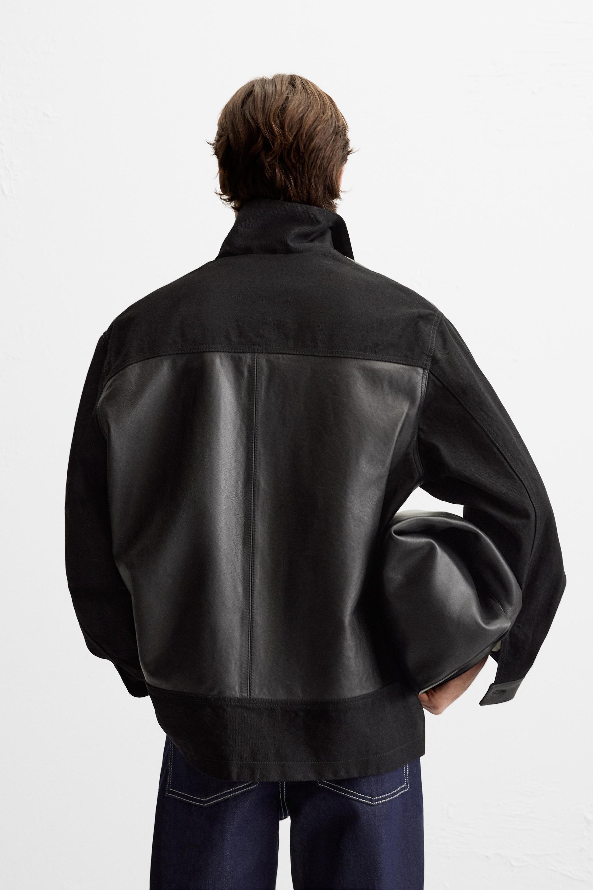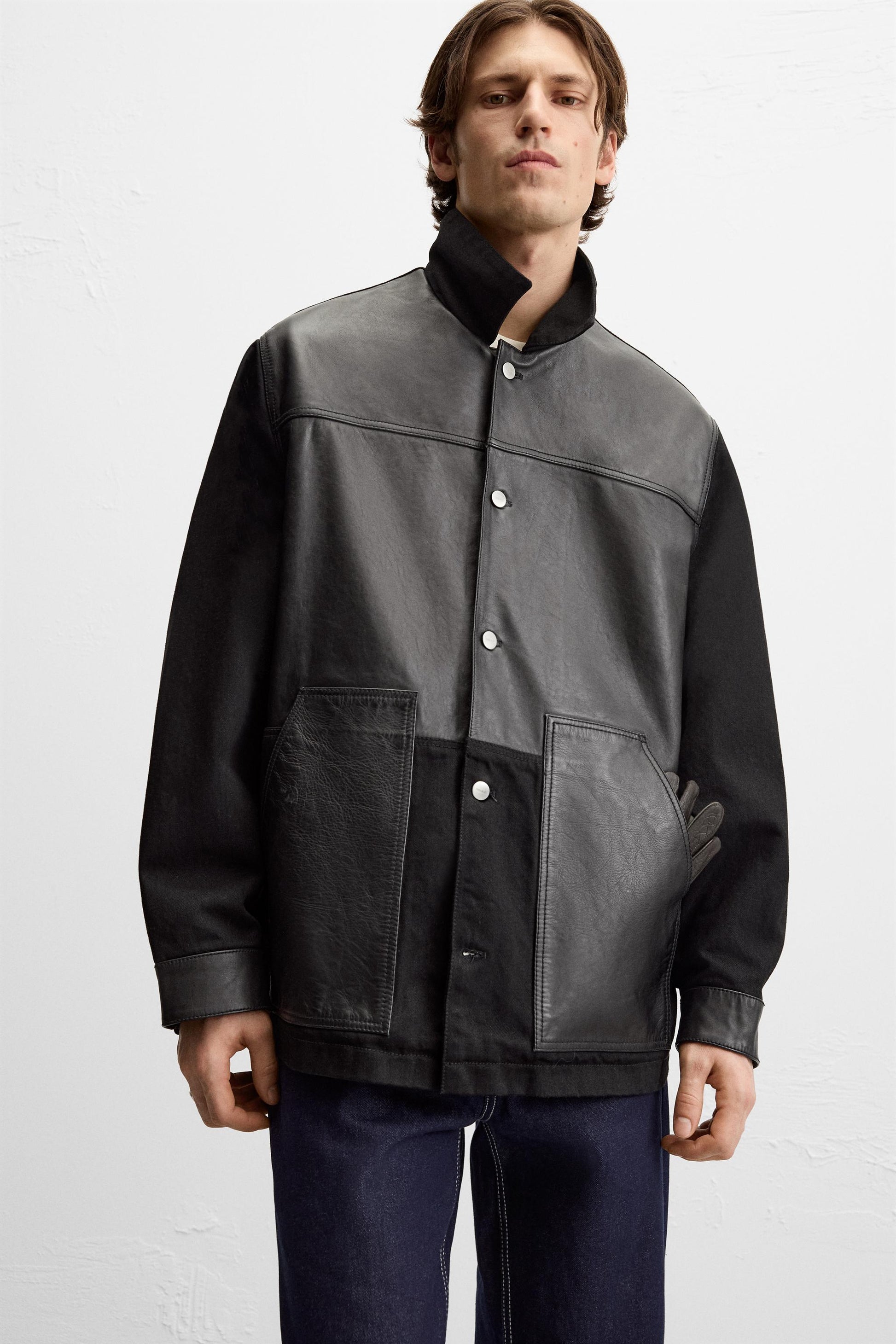 - Jacke im Relaxed Fit aus Leder kombiniert mit Jeansstoff.