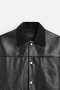 Schwarze Herren-Lederjacke mit Denim-Effekt