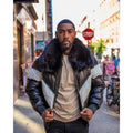 Schwarz-weiße V-Bomberjacke für Herren mit schwarzem Pelzkragen