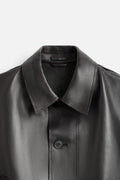 Braune Cropped-Fit-Lederjacke für Herren mit Taschen