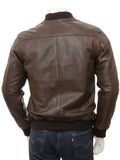 Eine schlichte, braune Bomberjacke aus Leder. Schafsnappaleder ist das perfekte Fell für diese Jacke mit weichem, geschmeidigem Griff und tiefer Farbdichte. Der Schnitt folgt dem MA-Muster mit Blusenkörper, Rippstrickkragen, Bündchen und Saum sowie Pattentaschen an der Taille. Alles, was eine Jacke braucht, und nichts weiter. Das Innere ist komplett mit schlichtem Popeline gefüttert und verfügt über eine lederbesetzte Tasche.