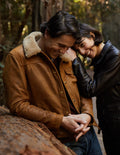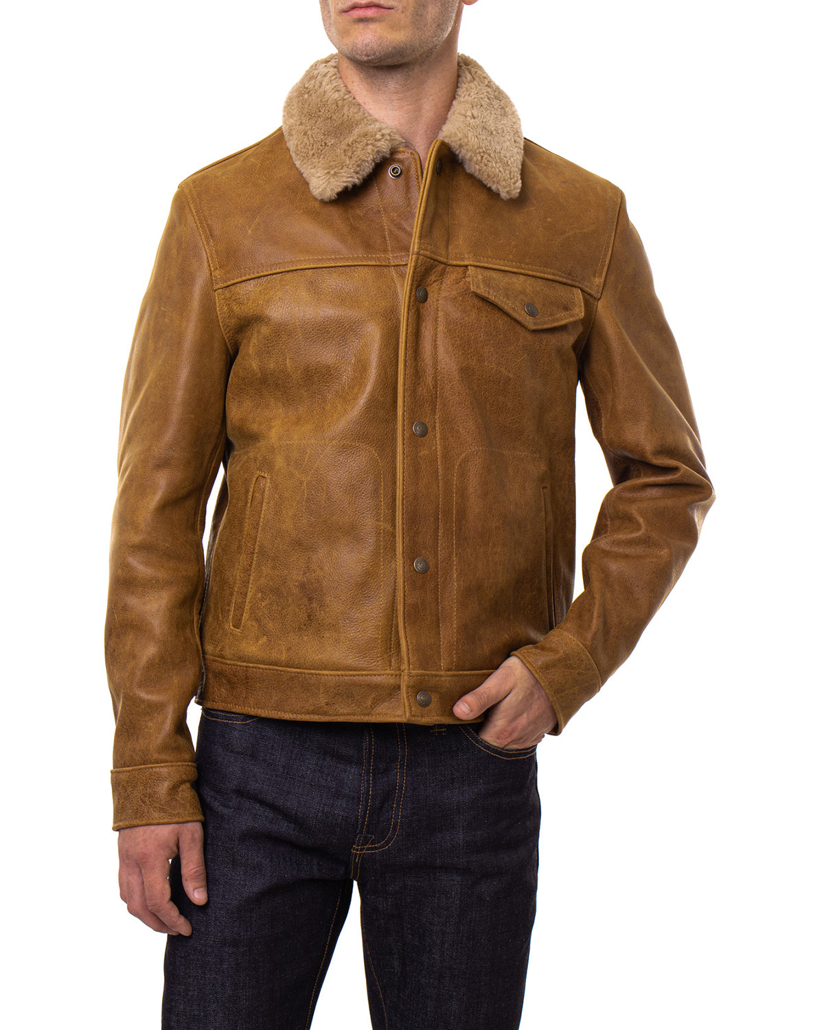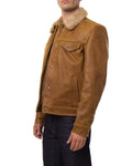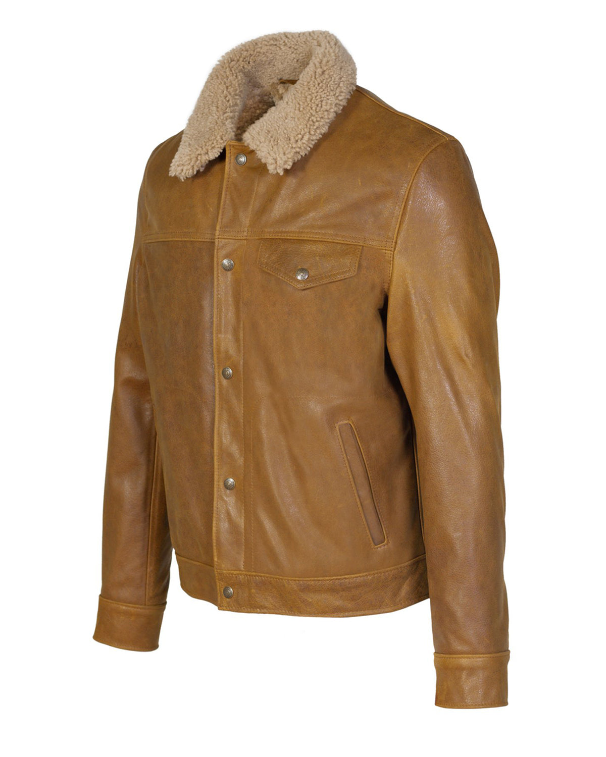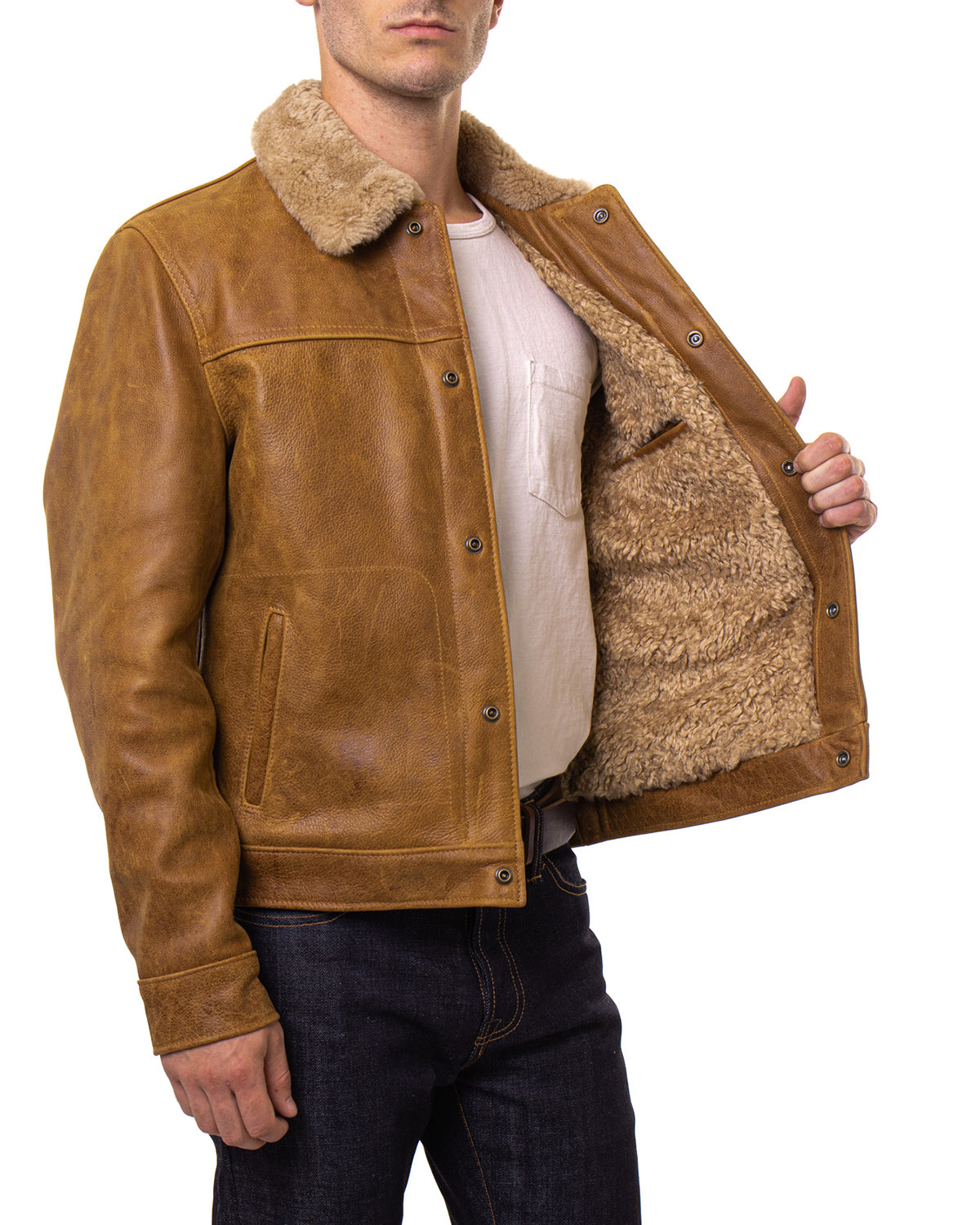Truckerjacke aus Büffelleder für Herren mit Schaffellkragen