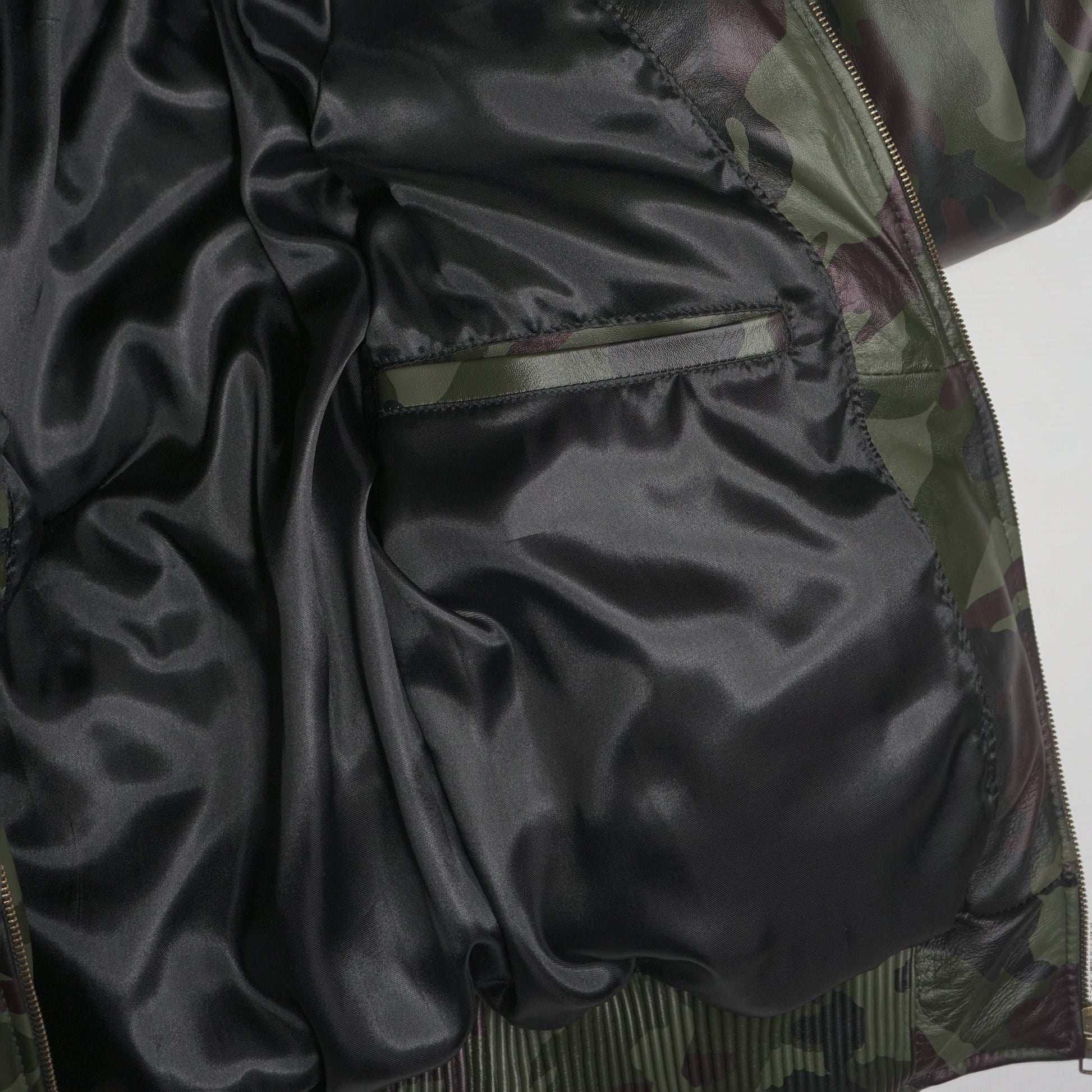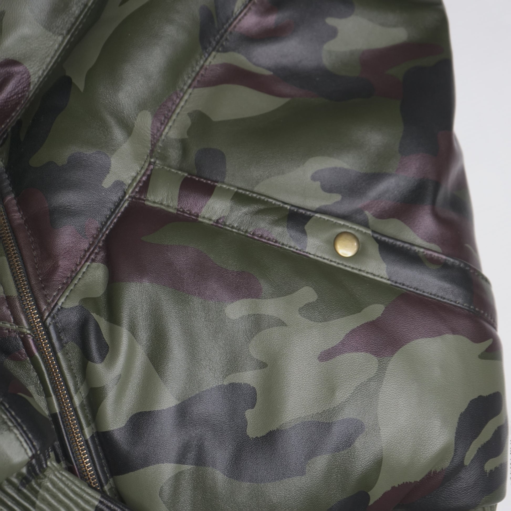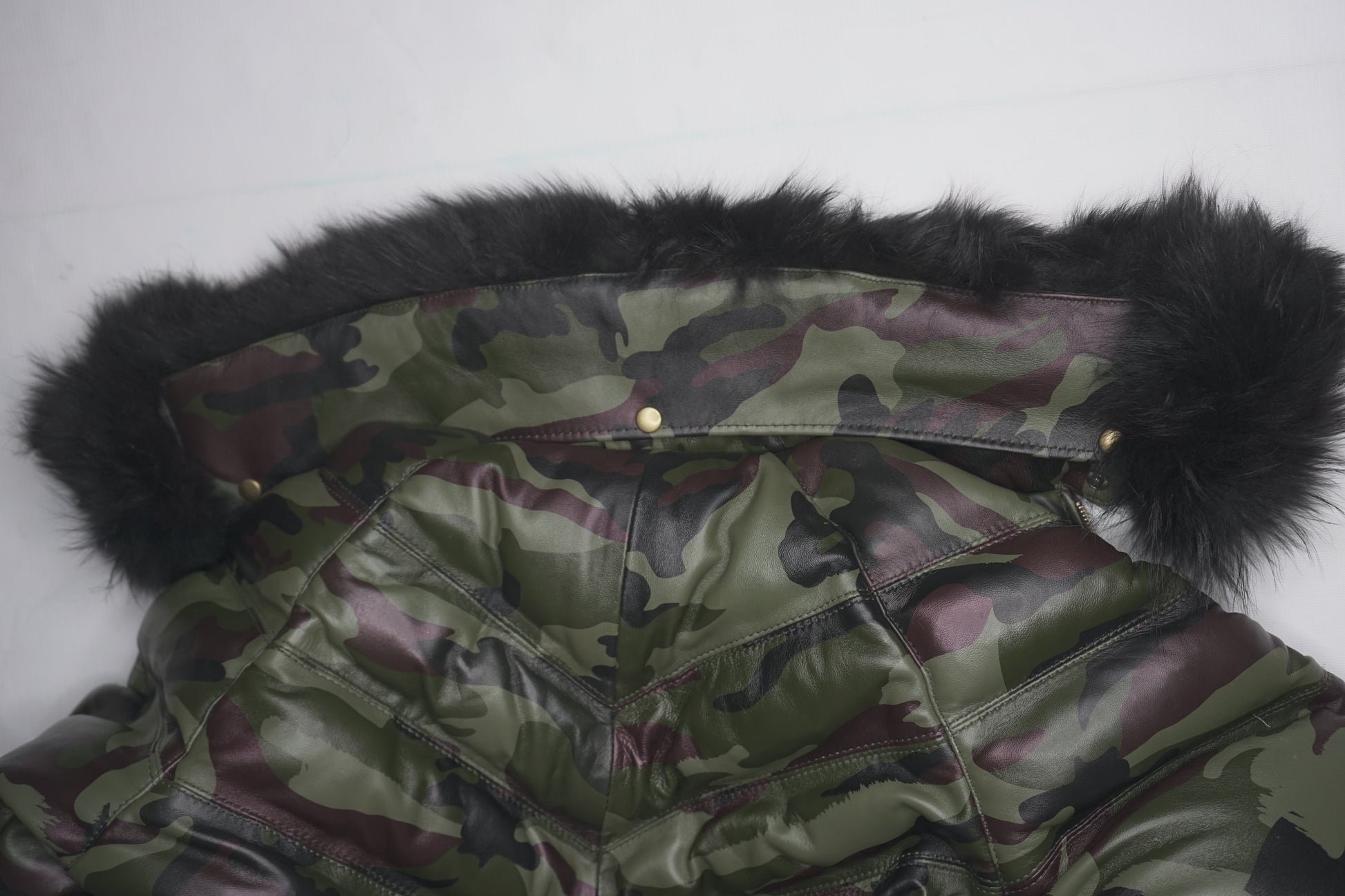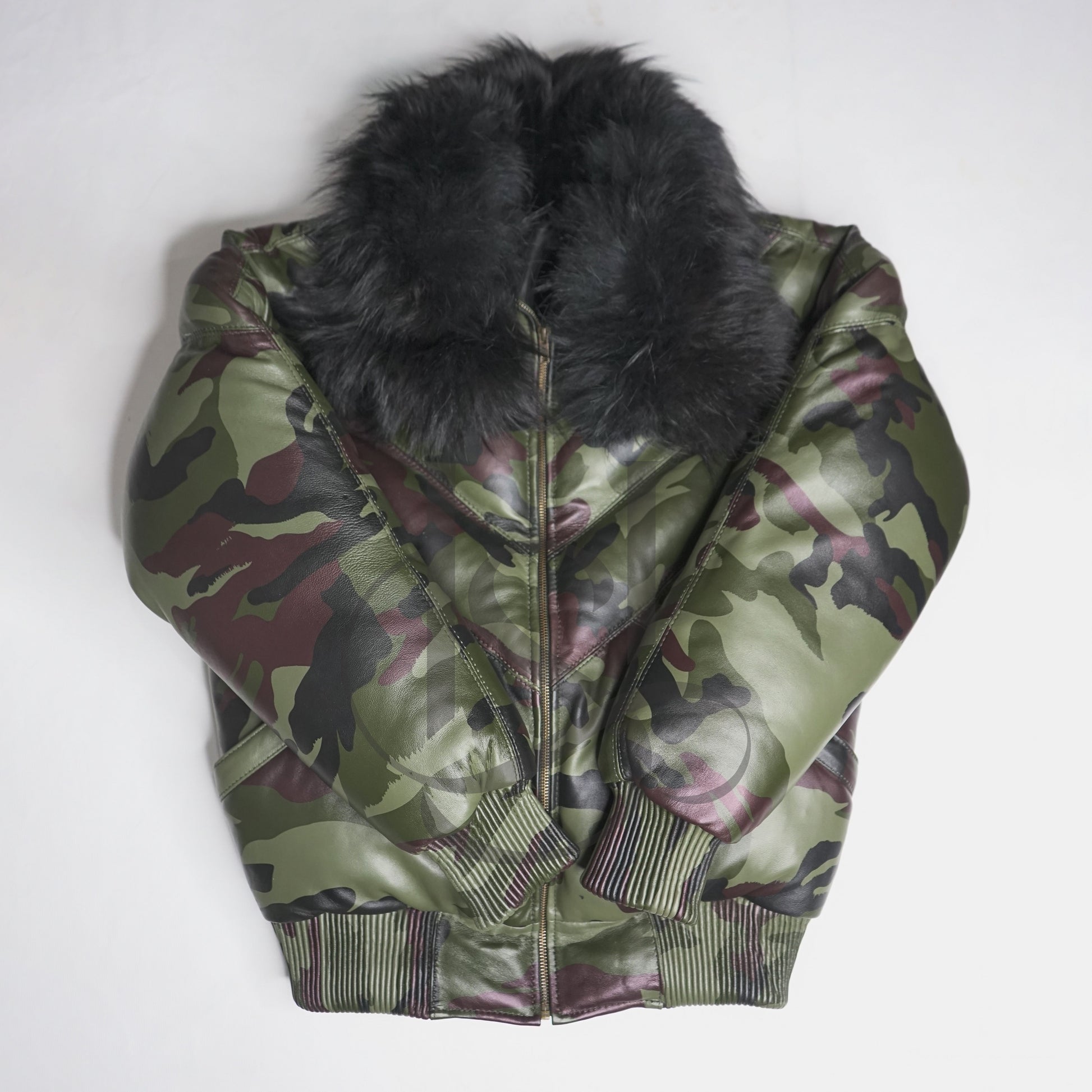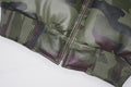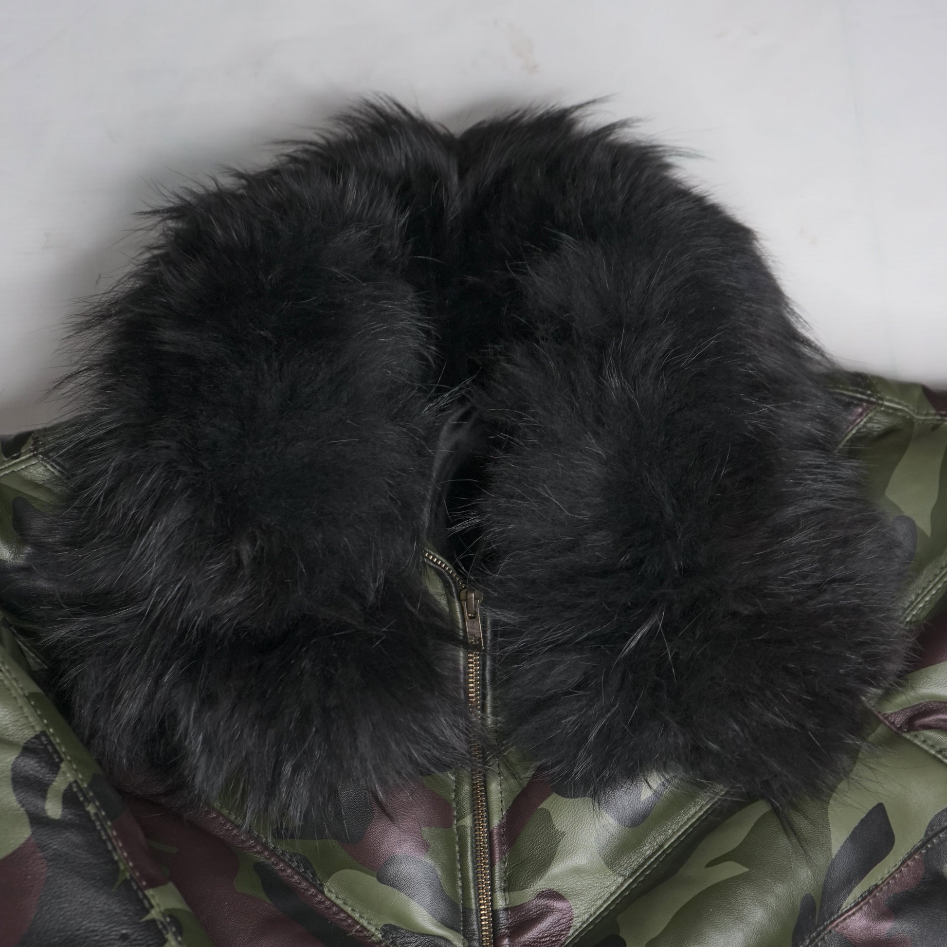 Herren-V-Bomber-Lederjacke aus 100 % Entendaunen und echtem Pelzkragen im Camouflage-Look