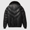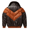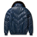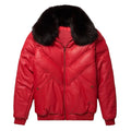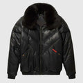 Herren Double Goose Puffer V-Bomberjacke aus Fuchspelz mit Kragen aus Lammleder