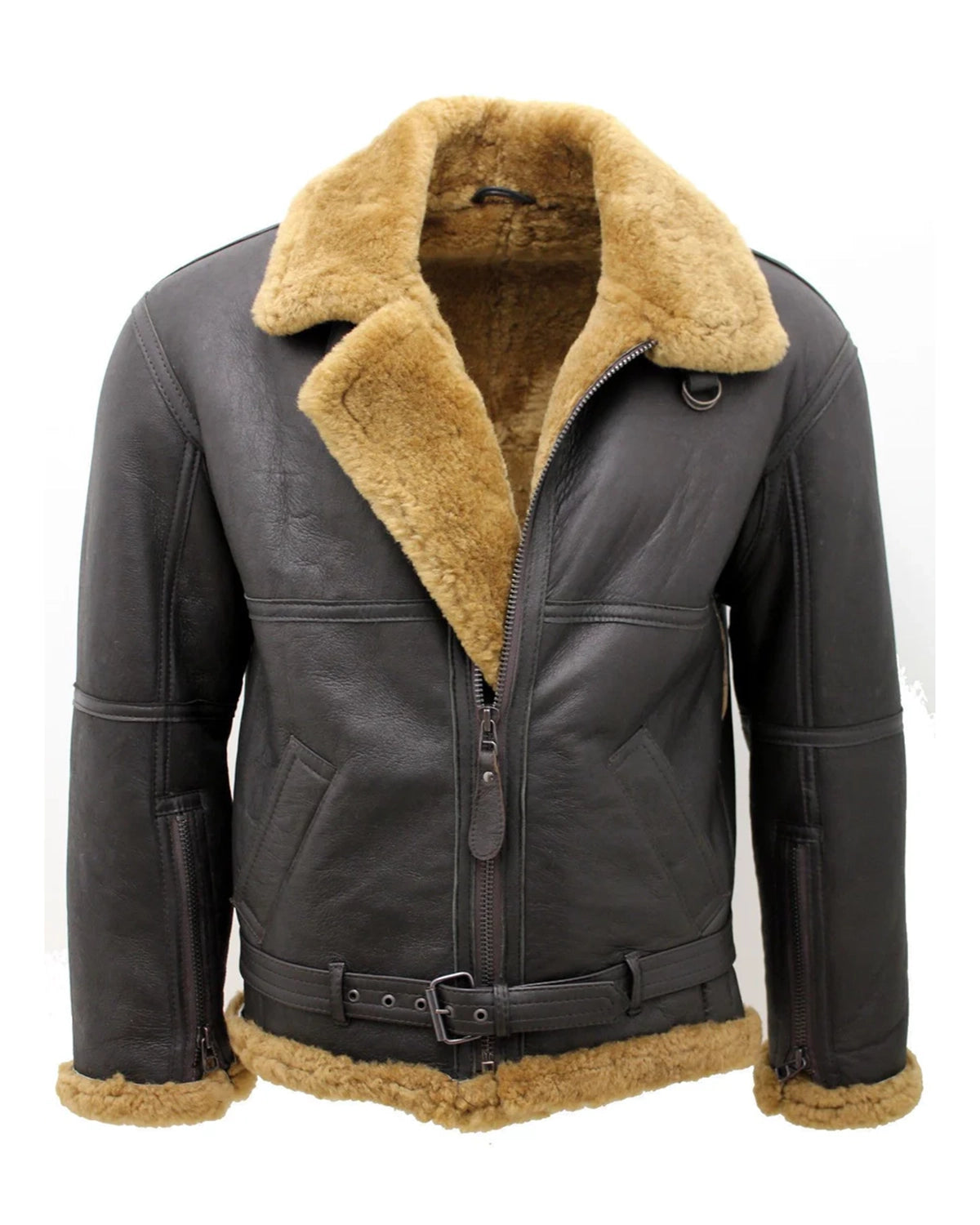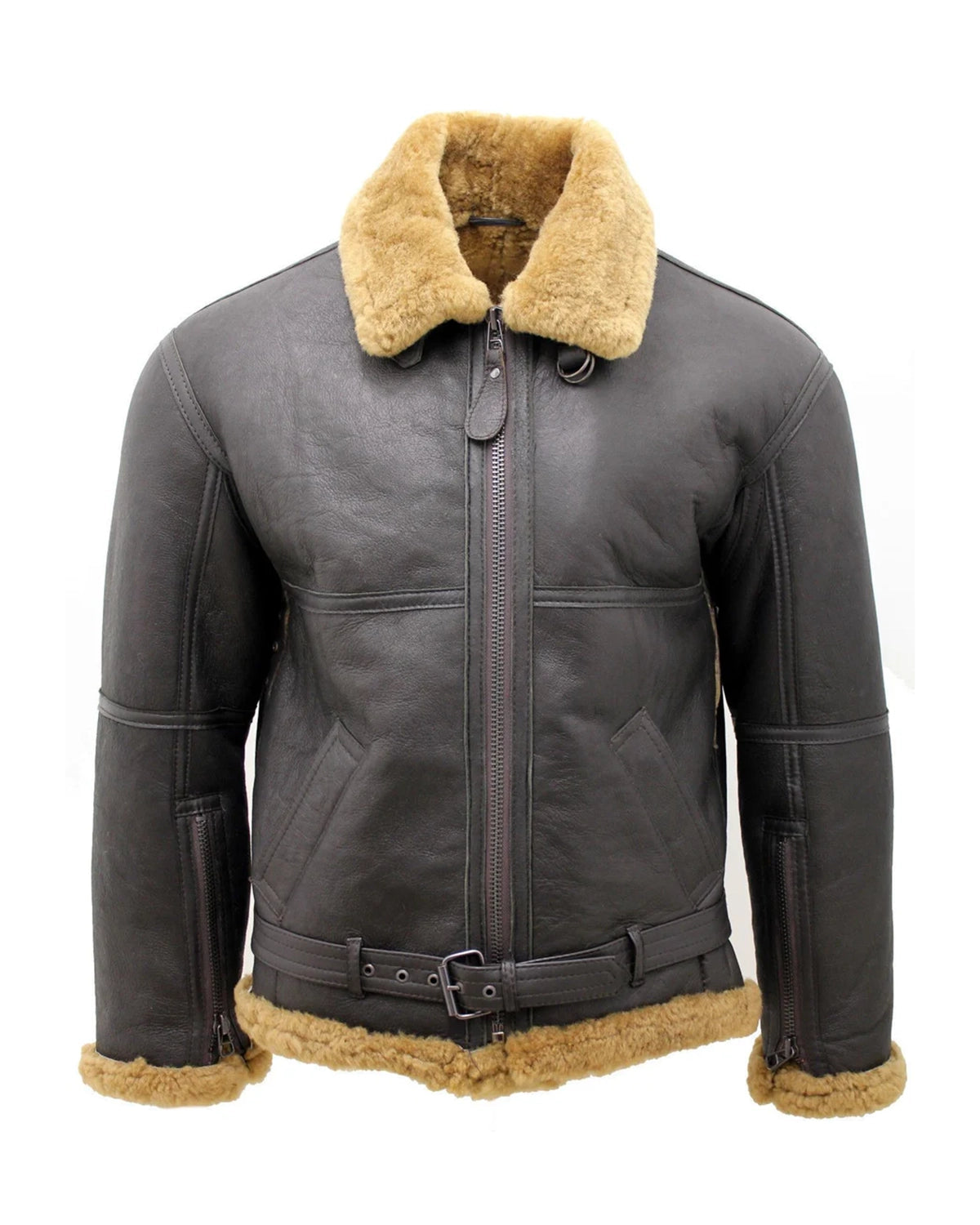 Herren-Pilotenjacke RAF B3 aus Schaffell, Braun/Ingwer (mit Gürtel)