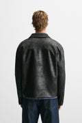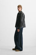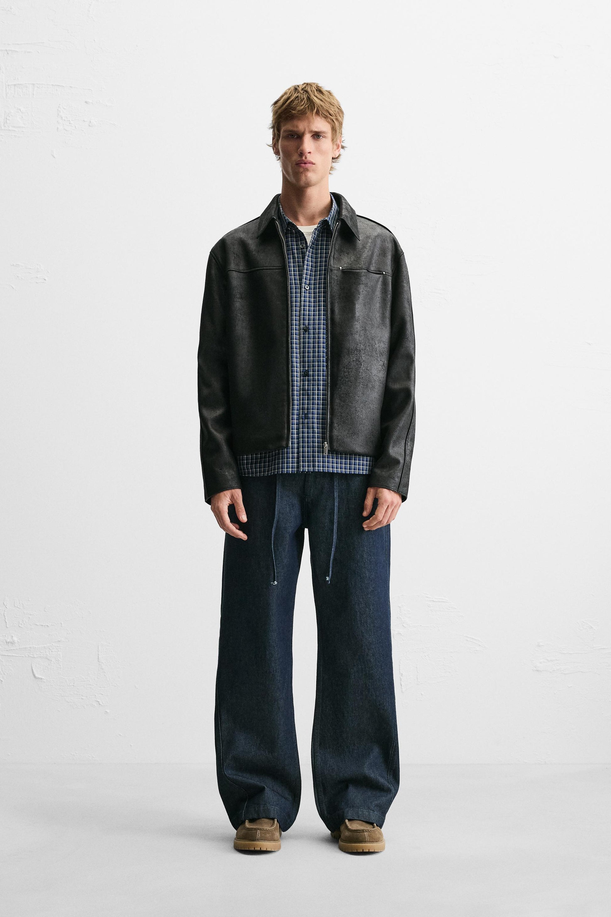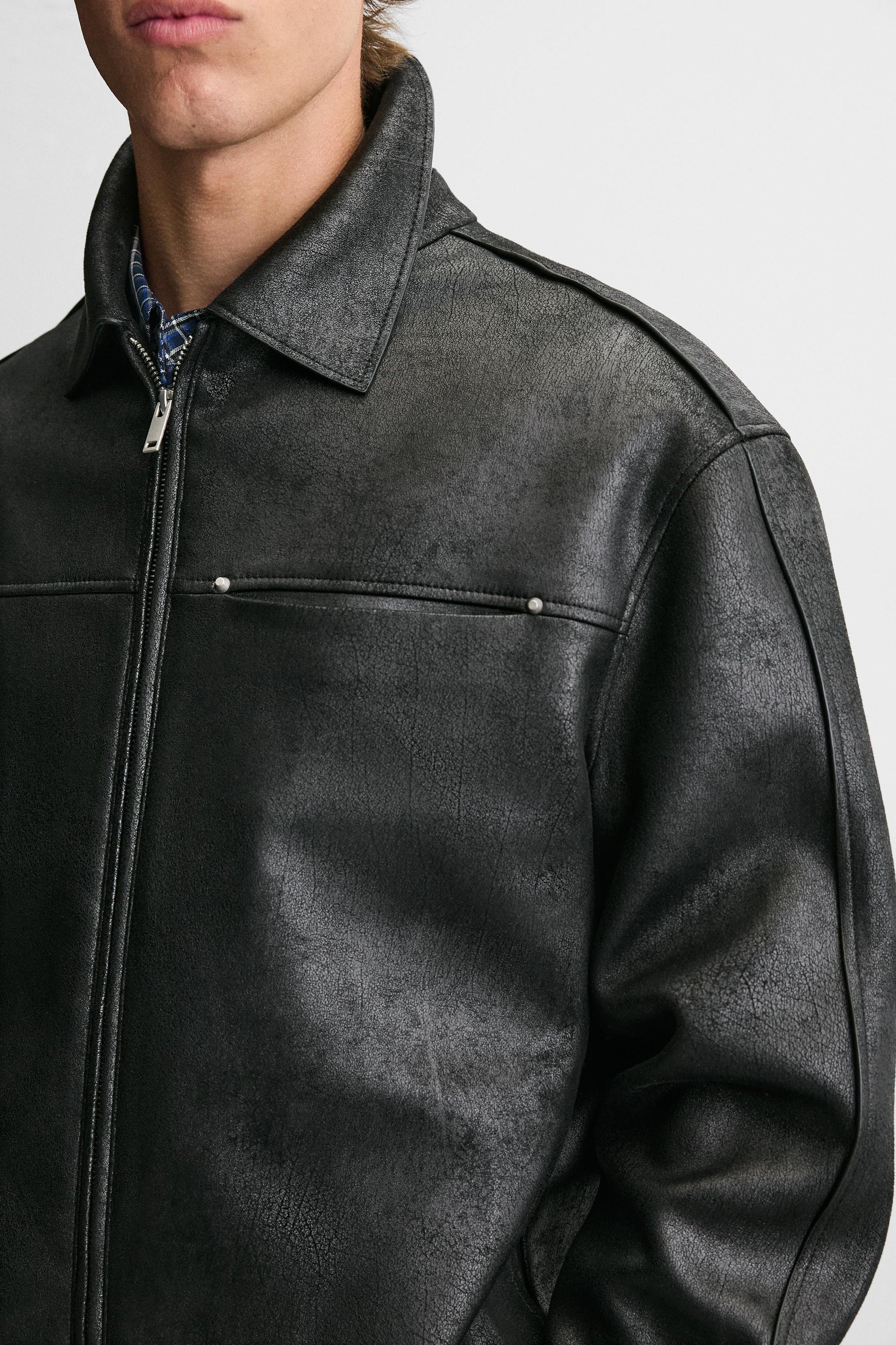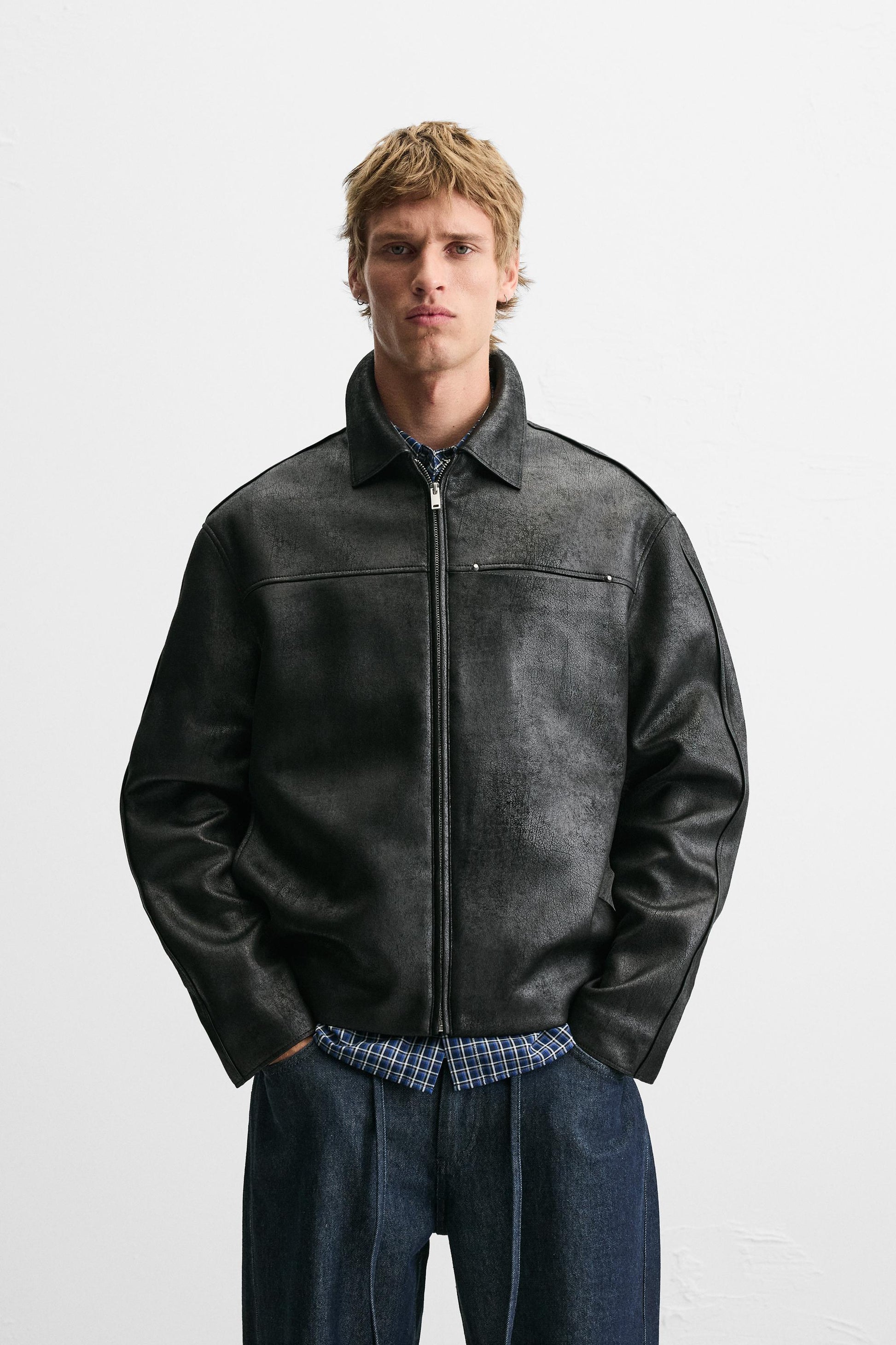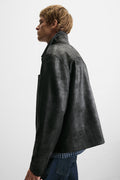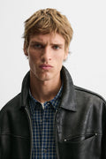 Schwarze, schlichte Lederjacke für Herren in normaler Passform