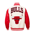 Weiße Collegejacke „CHICAGO BULLS“ aus gerippter Wolle für Herren