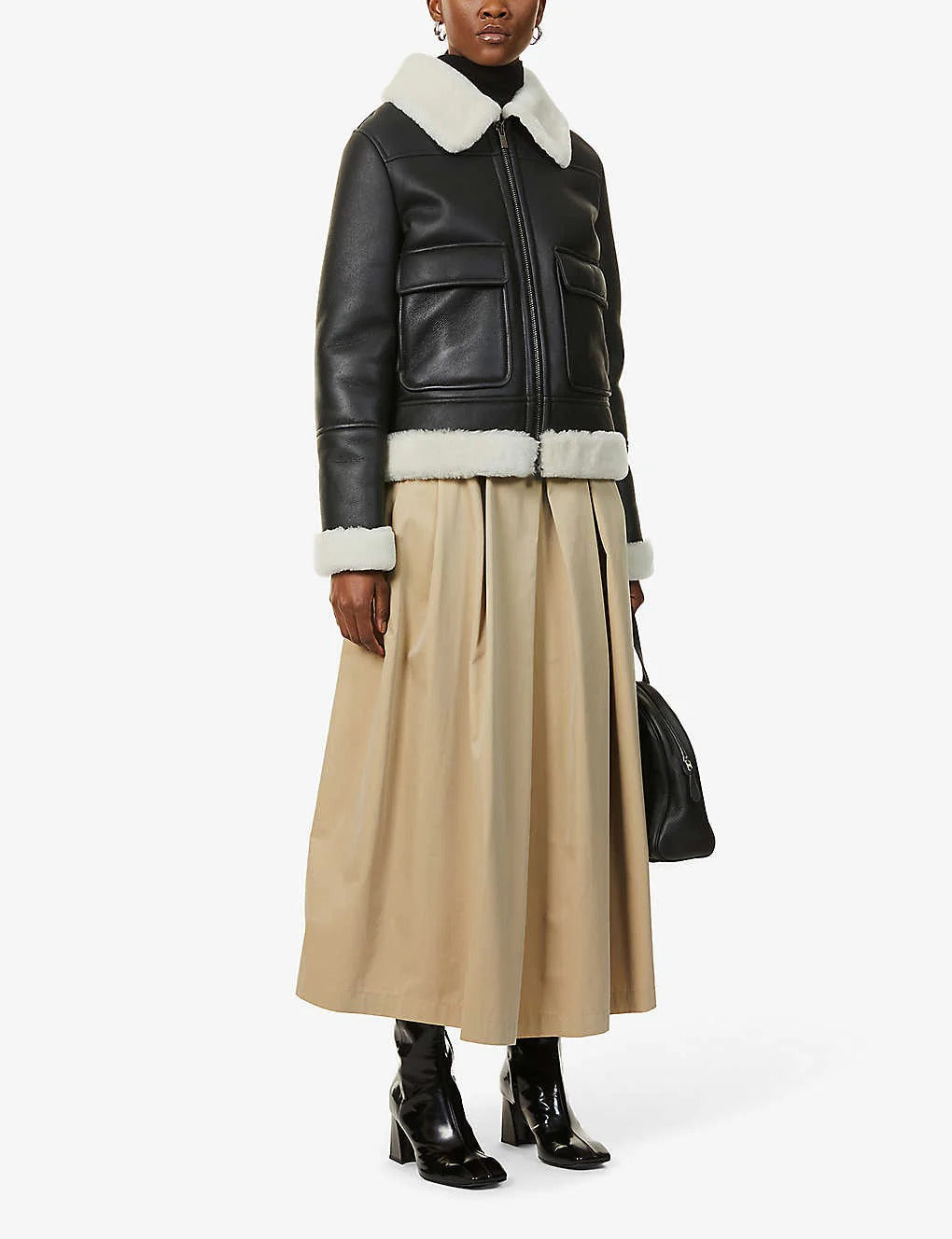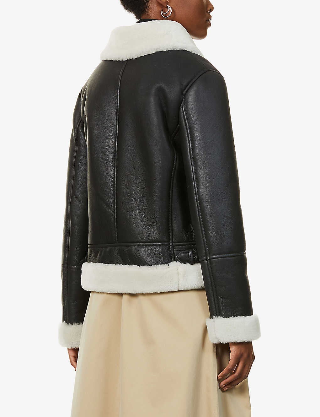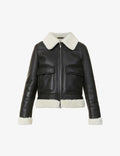 Schwarze Damen-Lederjacke mit Shearling und zwei Taschen