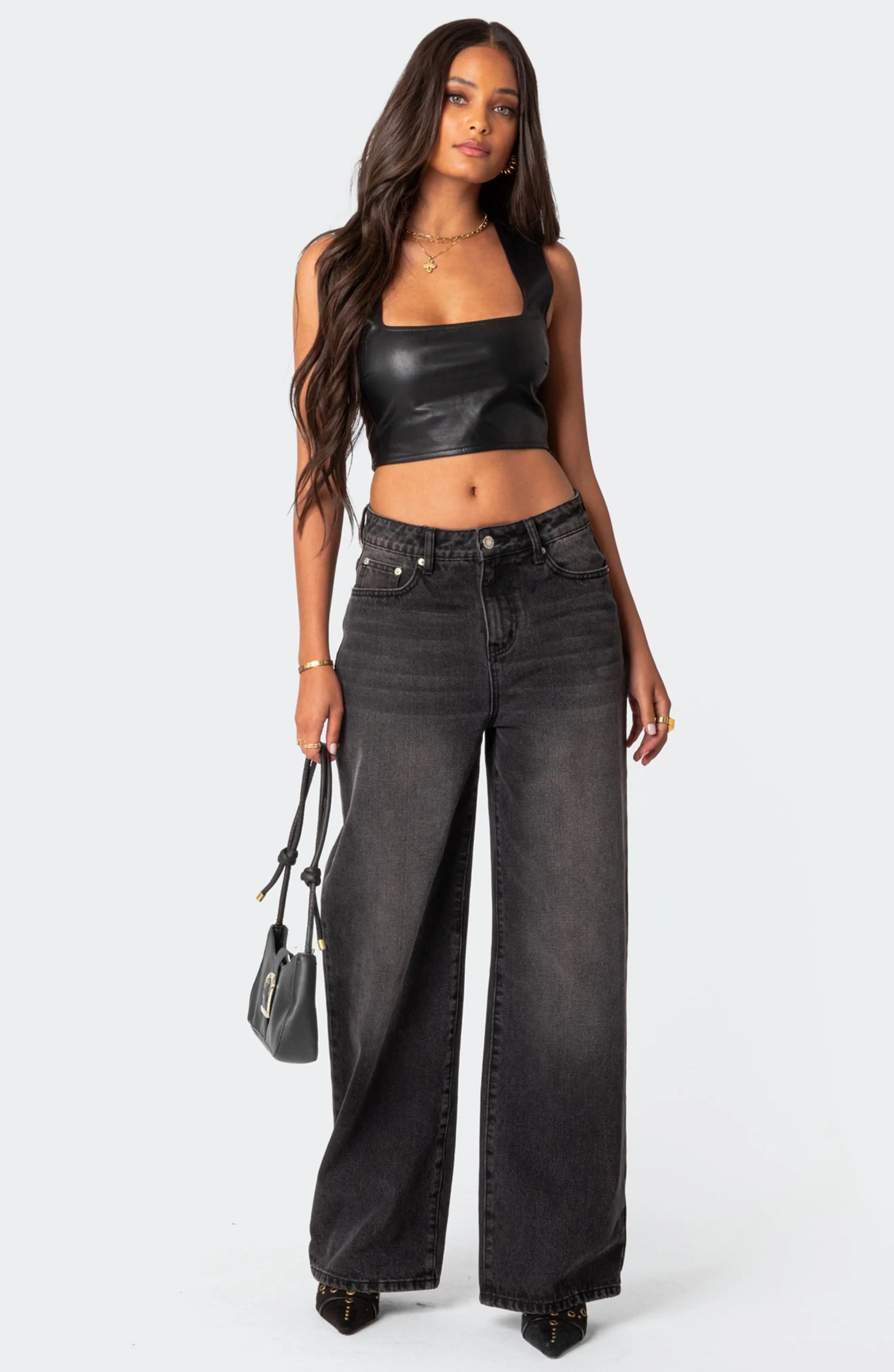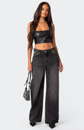 Dieses Bustier-inspirierte Crop-Top ist aus geschmeidigem Leder gefertigt, das Ihrem Look eine kantige Energie verleiht.