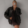 Braune 90er Vintage Oversize Lederjacke für Damen