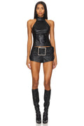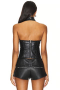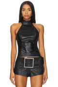 Damen – Mila – Oberteil aus Kunstleder in schwarz