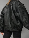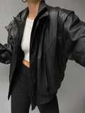 Schwarze Oversize-Lederjacke aus weichem Lammfell für Damen
