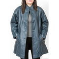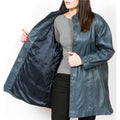 Damen – Locker geschnittener Swing-Mantel aus Leder in Blau