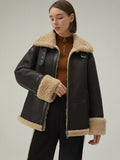 Brauner Damen-Kurzledermantel aus Pelz und Lammfell