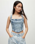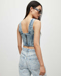 Ärmelloses, kurzes Denim-Korsetthemd für Damen