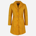 Eleganter Damen-Trenchcoat aus Leder in Gelb