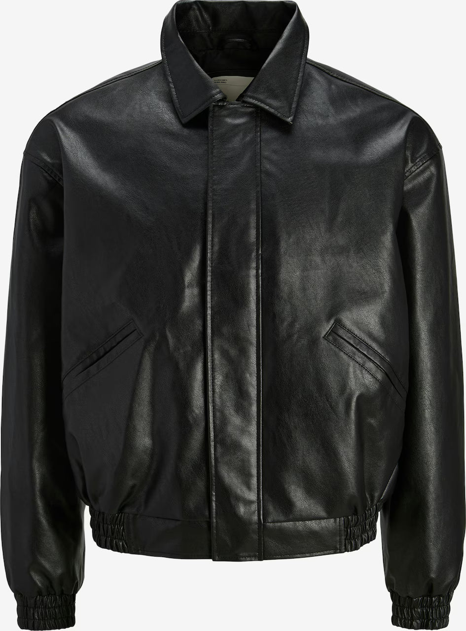 Chaqueta de cuero estilo bomber para hombre