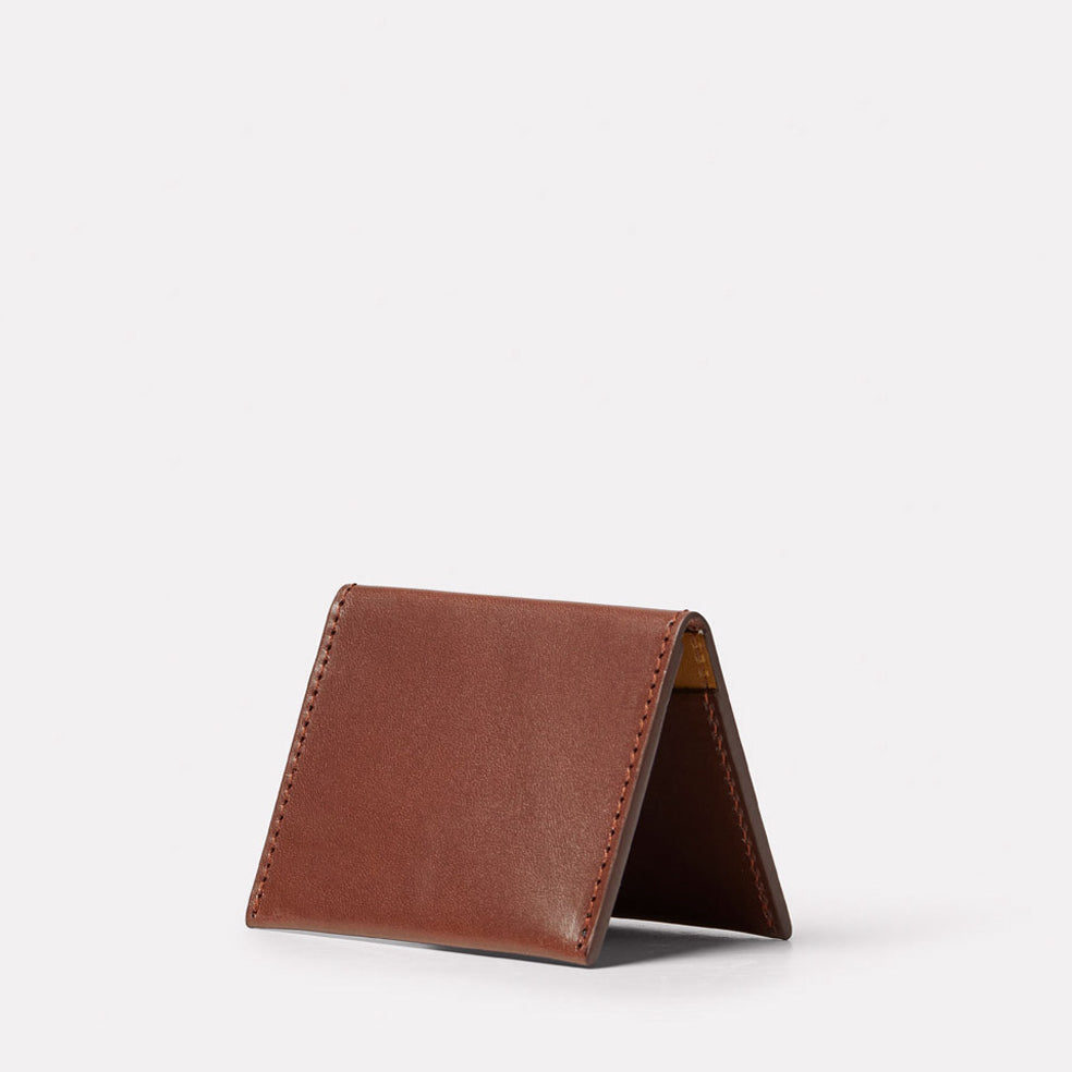 - Tarjetero de piel marrón con bolsillos interiores en contraste.