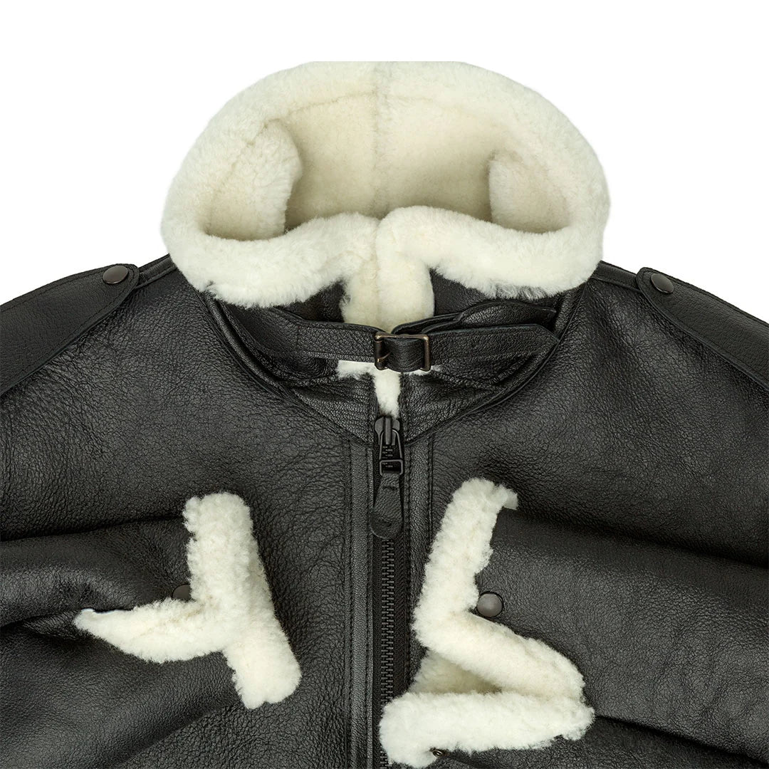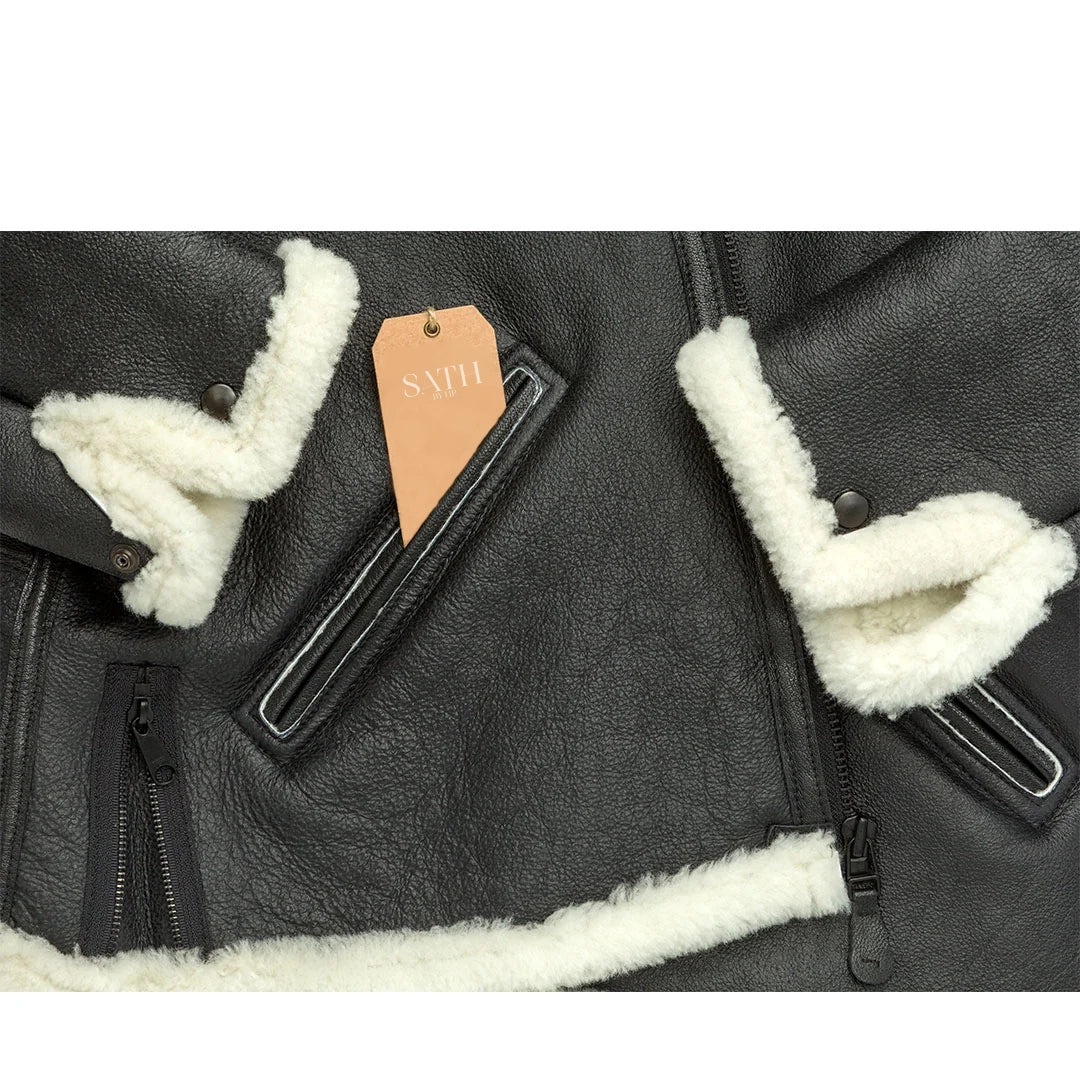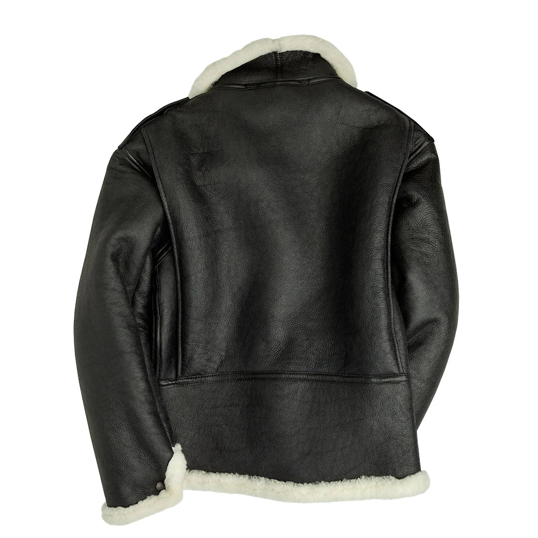 Chaqueta bomber de piel de oveja negra B-6 para hombre