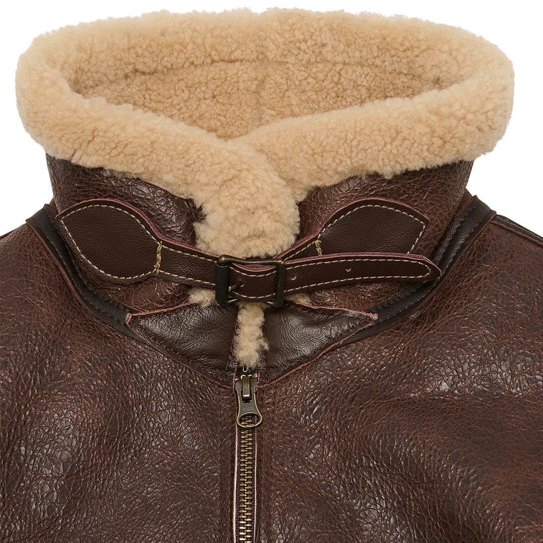 Chaqueta bomber de piel de oveja marrón B-6 para hombre