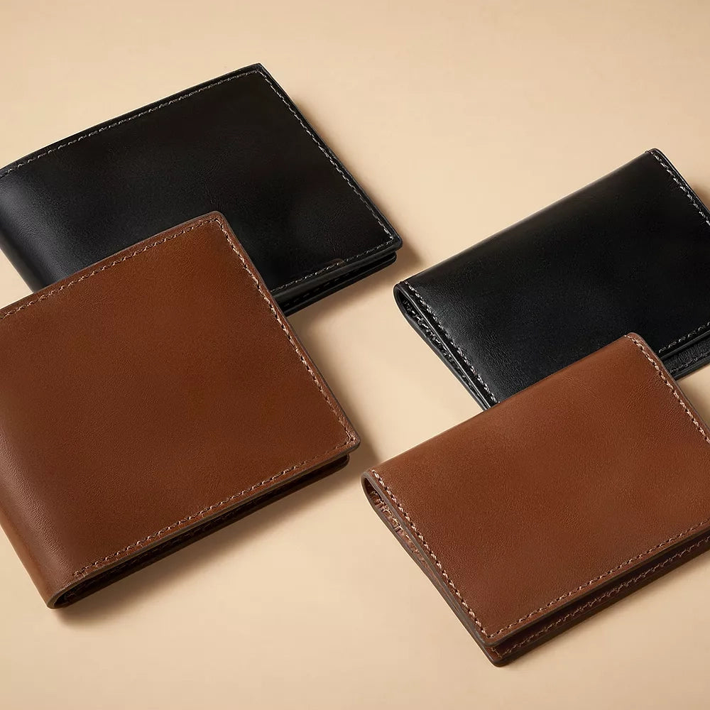 Tarjetero plegable de cuero negro y marrón para hombre