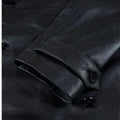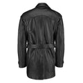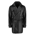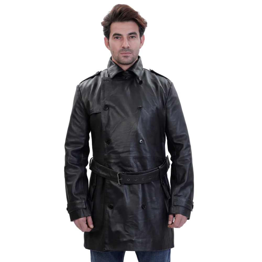 Gabardina de cuero negro con cinturón y doble botonadura para hombre