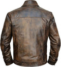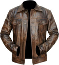 Chaqueta de cuero estilo camionero vintage marrón desgastada distintiva para hombre
