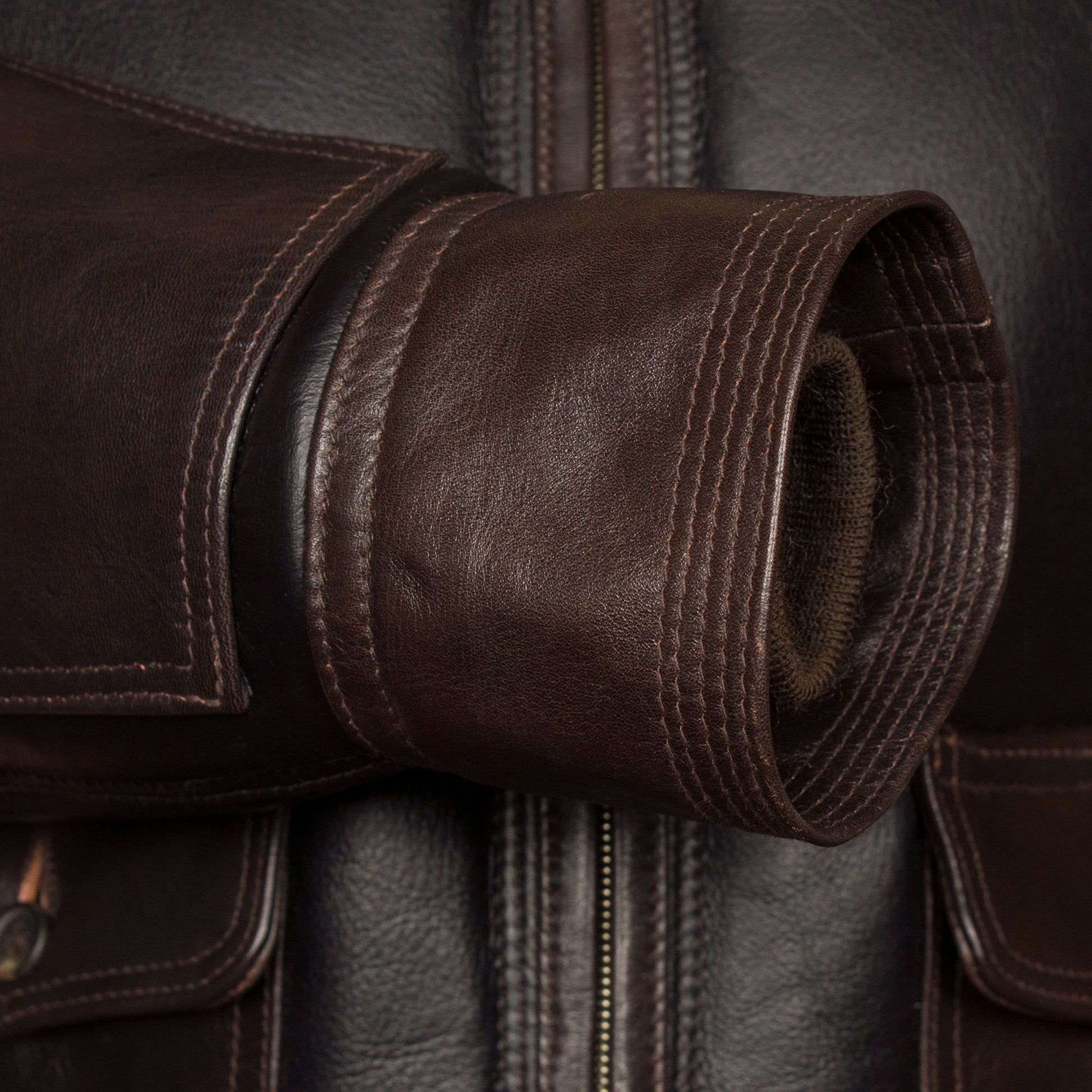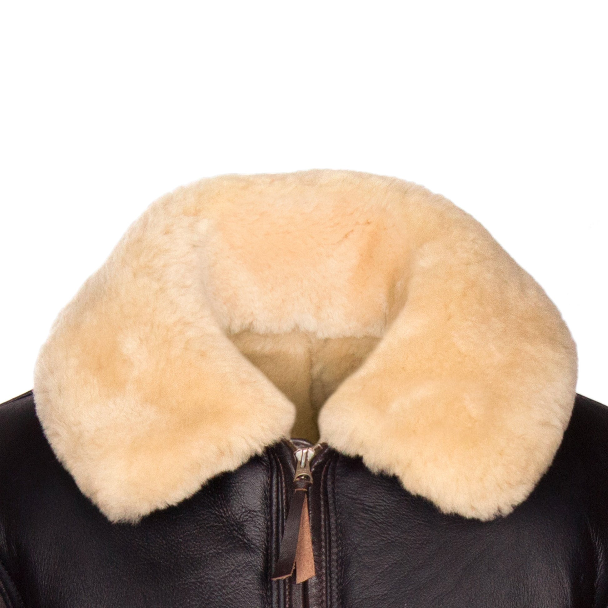Chaqueta de piel de oveja marrón claro con pelo blanco para hombre