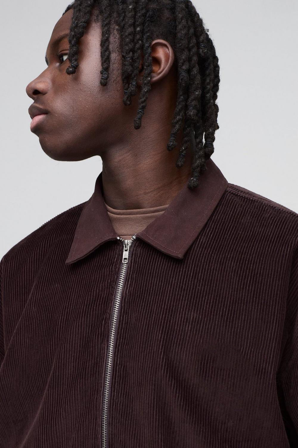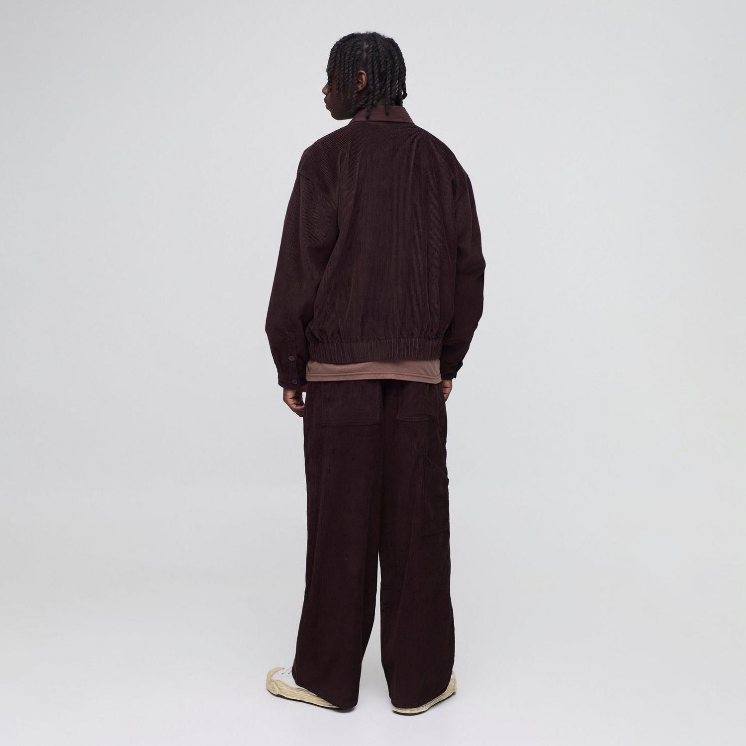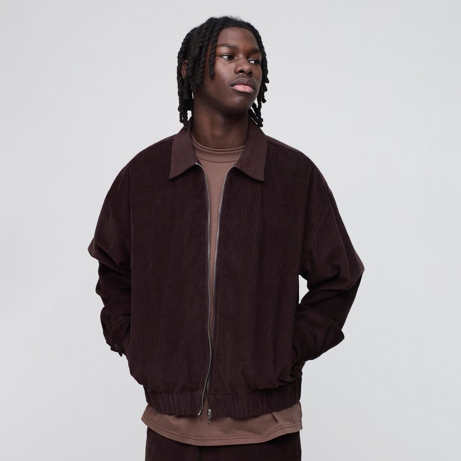 Chaqueta universitaria de pana estilo bombardero con insignia cuadrada extragrande para hombre