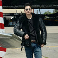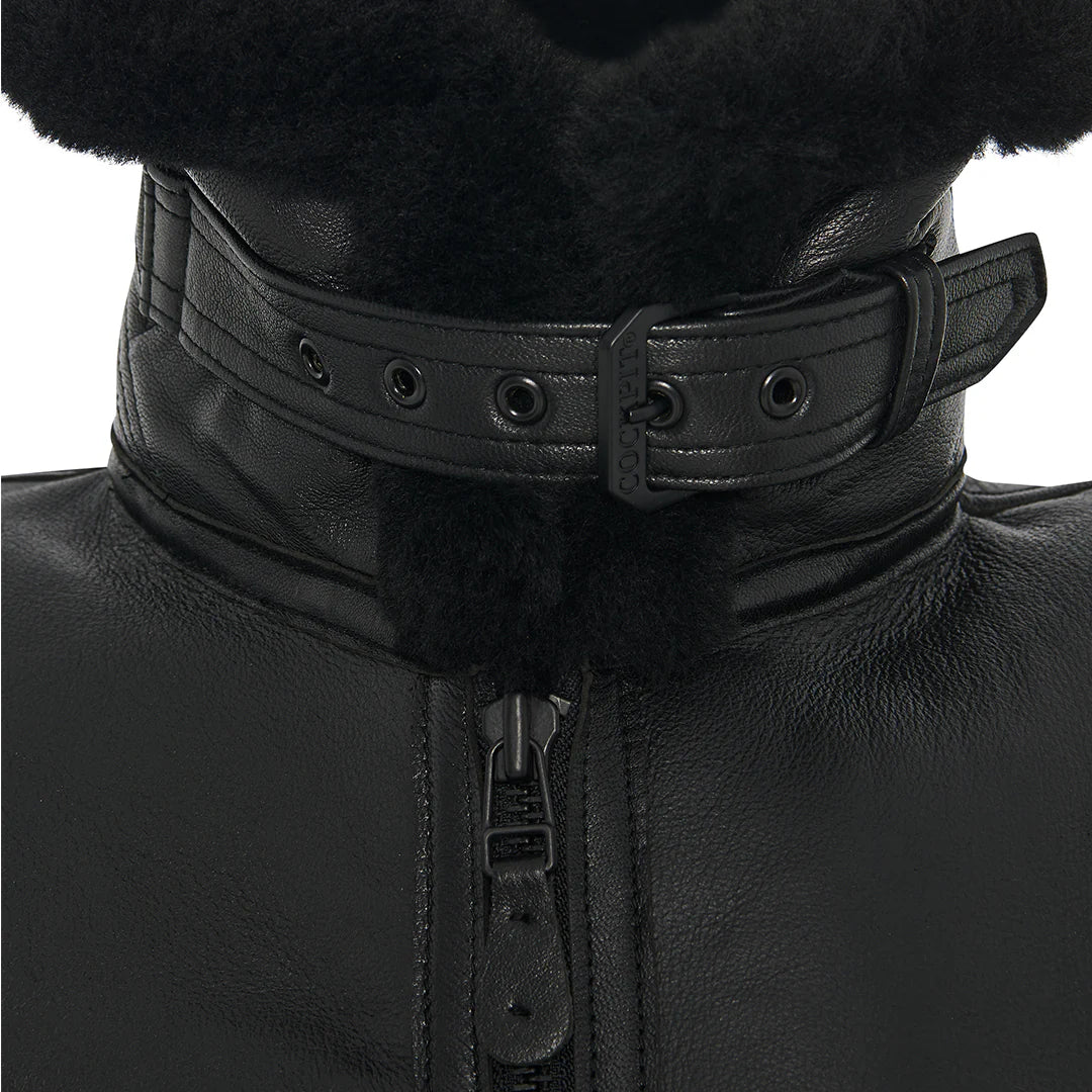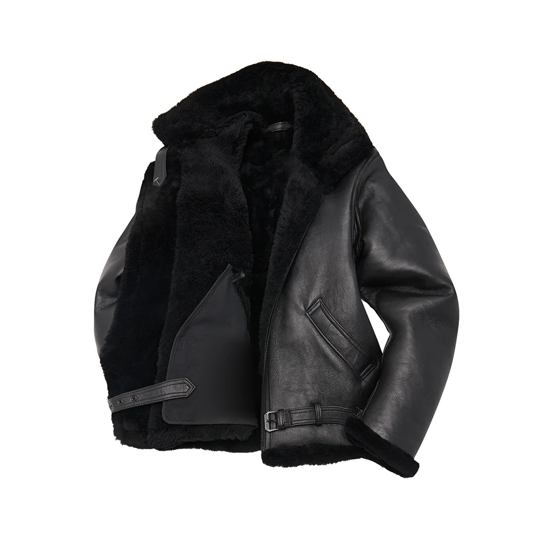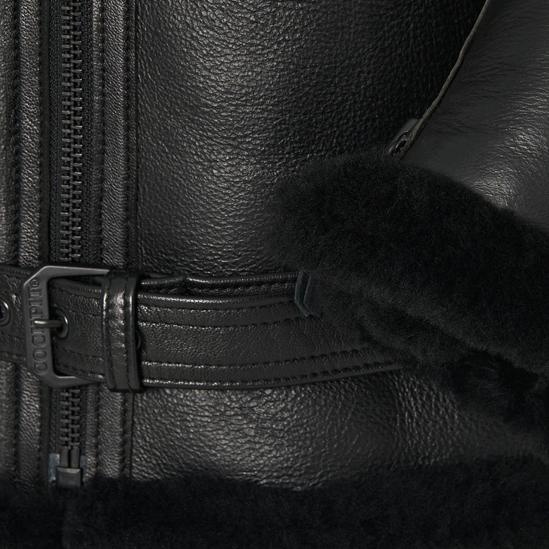 Chaqueta bomber de piel de oveja de la RAF para hombre en color negro