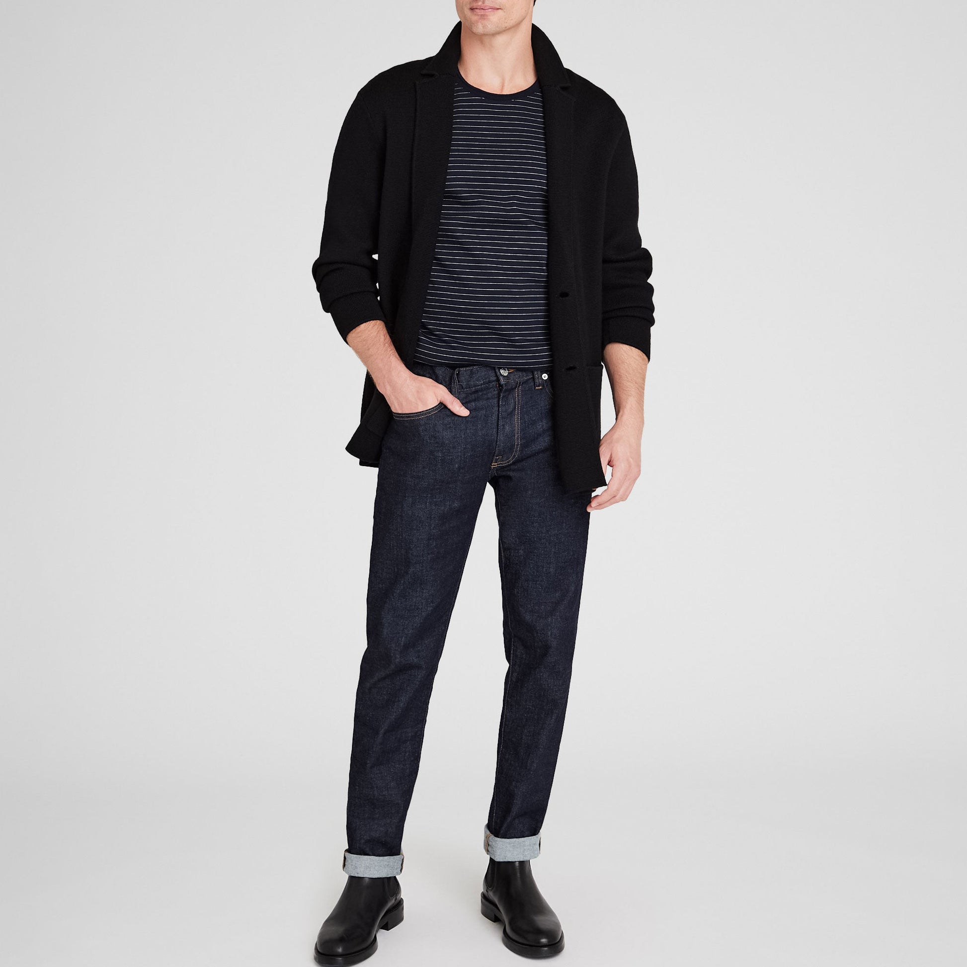 El blazer estándar se reinventa para el día a día con una refinada lana merino con costura Milano y un corte ligeramente holgado. Esta prenda de transición cuenta con un bolsillo en el pecho y dos laterales.