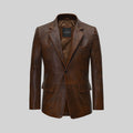 Blazer medieval de cuero marrón español de dos botones para hombre