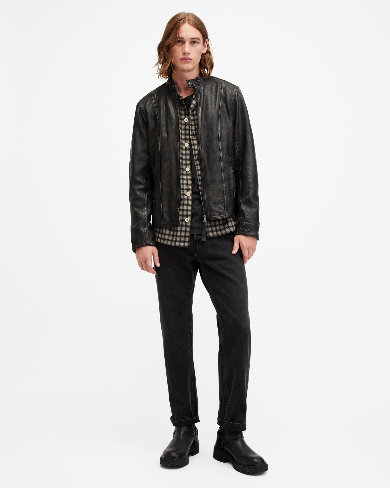 El cuero de inspiración vintage siempre es una apuesta segura. La chaqueta Murphy tiene cuello de solapa y está hecha de un cuero especialmente desarrollado, lavado a fondo para lograr un aspecto auténtico y envejecido con un acabado bicolor. Tiene un corte de corredor con costuras distintivas y pespuntes dobles que definen la silueta. Completada con nuestros herrajes distintivos, es una opción de cuero atemporal.