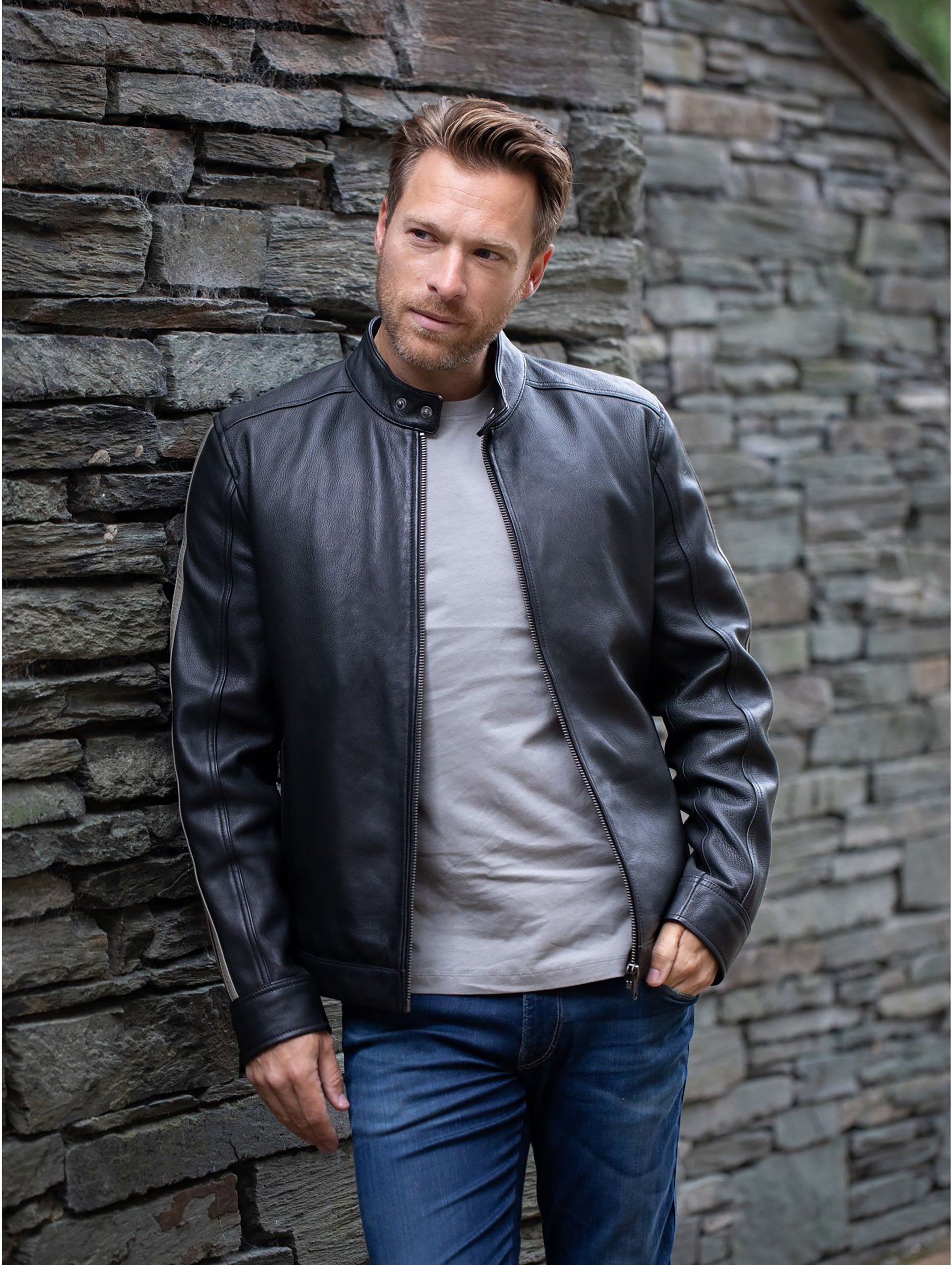 Realza tu estilo de abrigo con la chaqueta motera Morton, confeccionada por expertos en cuero de anilina curtido vegetal para un acabado natural y suntuoso que mejora con el tiempo. Diseñada con una silueta elegante y moderna, esta chaqueta presenta dos rayas en contraste que recorren los brazos, un detalle llamativo que realza su diseño atemporal.
