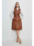 Gabardina de cuero marrón tostado sin mangas para mujer