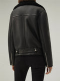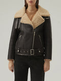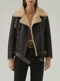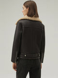 Chaqueta de piel y borrego con cinturón B-3 para mujer